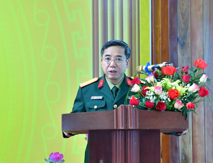 Đại tá Nguyễn Hồng Dương - Phó Chủ nhiệm Chính trị Bộ Tư lệnh Thủ đô phát biểu khai mạc