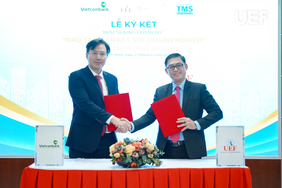 Ngày 27/12/2024, tại trụ sở trường Đại học Kinh tế tài chính Thành phố Hồ Chí Minh số 141 Điện Biên Phủ, Bình Thạnh, TP. Hồ Chí Minh đã diễn ra lễ ký kết biên bản ghi nhớ hợp tác giữa Vietcombank Đông Sài Gòn và Trường Đại học Kinh tế tài chính - Thành phố Hồ Chí Minh.
