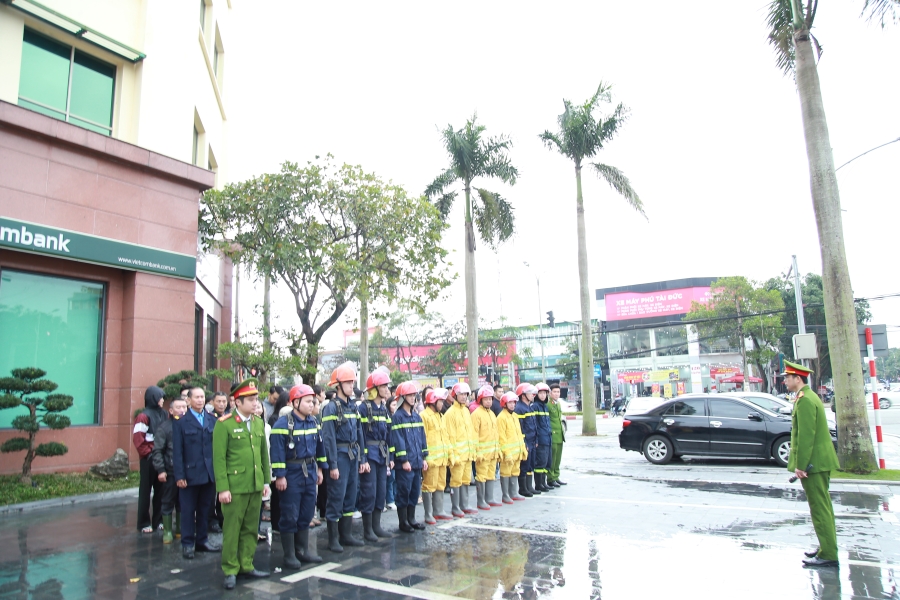 Tham dự buổi tập huấn và diễn tập, về phía phòng Cảnh sát PCCC và CNCH tỉnh Hà Tĩnh có các giảng viên và cán bộ. Về phía Vietcombank Hà Tĩnh có ông Dương Quốc Khánh - Phó Giám đốc cùng hơn 90 cán bộ, nhân viên, người lao động tại các phòng ban thuộc Chi nhánh, Phòng giao dịch.