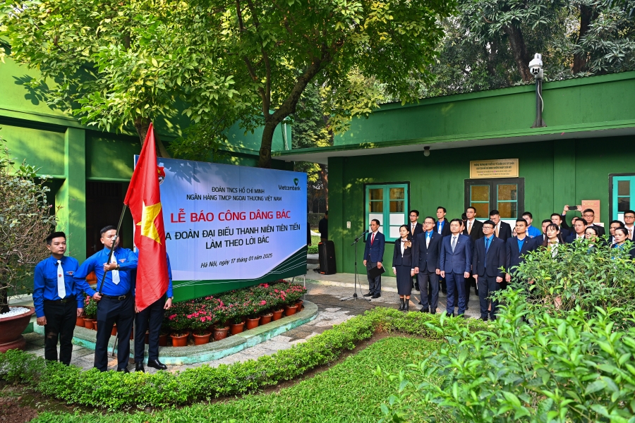 Sáng ngày 17/01/2025, tại Hà Nội, Đoàn đại biểu thanh niên tiên tiến Ngân hàng TMCP Ngoại thương Việt Nam (Vietcombank) tổ chức báo công dâng Bác tại Khu di tích Phủ Chủ tịch.