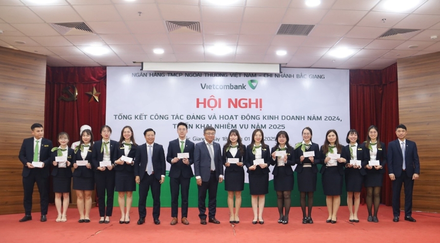 Cuối chương trình hội nghị, nhằm khuyến khích, động viên và biểu dương kịp thời những cá nhân, tập thể đã có đóng góp tích cực vào việc thực hiện các chỉ tiêu kinh doanh năm 2024 của chi nhánh, Ban Giám đốc Vietcombank Bắc Giang đã tuyên dương và trao thưởng cho các tập thể phòng và cá nhân có thành tích xuất sắc trong năm 2024. Đây là sự động viên to lớn, khích lệ toàn thể Chi nhánh quyết tâm hoàn thành nhiệm vụ kinh doanh năm 2025.