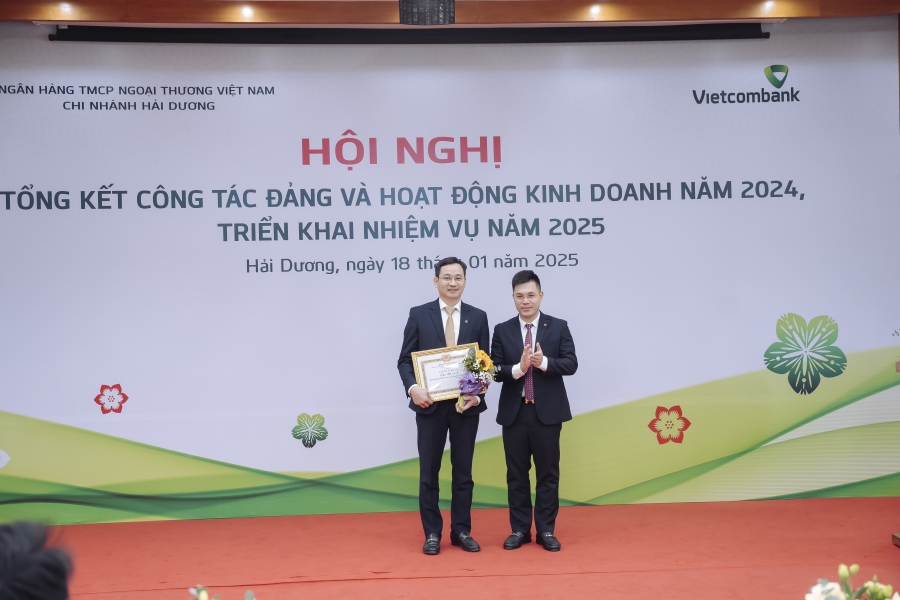 Năm 2024 là một năm nhiều khó khăn, song với tinh thần “đoàn kết, đổi mới, sáng tạo”, bám sát định hướng của Ban lãnh đạo Vietcombank, Đảng ủy, Ban Giám đốc chi nhánh đã có những định hướng đúng đắn, lãnh đạo tập thể Vietcombank Hải Dương hoàn thành nhiều mục tiêu kế hoạch đề ra, duy trì vị thế trong hệ thống Vietcombank và trên địa bàn: năm thứ tư liên tiếp được Đảng ủy Vietcombank trao tặng Giấy khen “Đảng bộ hoàn thành xuất sắc nhiệm vụ”; tặng cờ thi đua “Đơn vị xuất sắc” của hệ thống và được ghi nhận là Đơn vị dẫn đầu địa bàn theo đánh giá của Ngân hàng Nhà nước tỉnh Hải Dương.