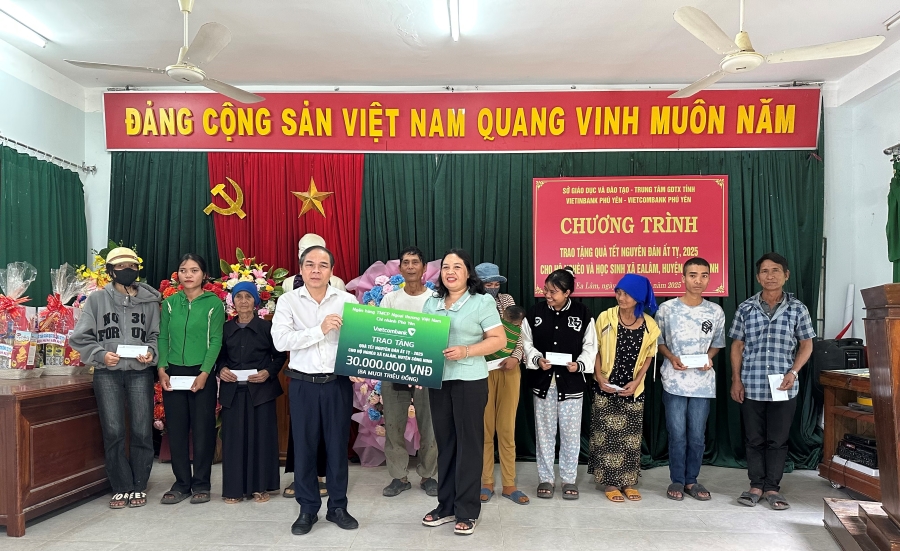 Ngày 20/01/2025, đại diện Vietcombank Phú Yên, đ/c Lê Đức Nguyên - Phó Bí thư phụ trách chi bộ, Phó Giám đốc Chi nhánh đã trực tiếp đến xã EaLâm, huyện Sông Hinh trao 60 suất quà cho các hộ nghèo, mỗi suất trị giá 500 nghìn đồng. Tổng số tiền trao tặng là 30 triệu đồng.
