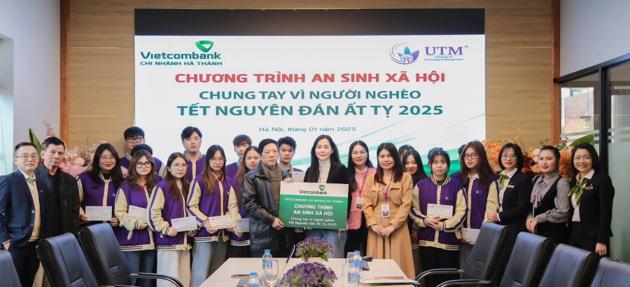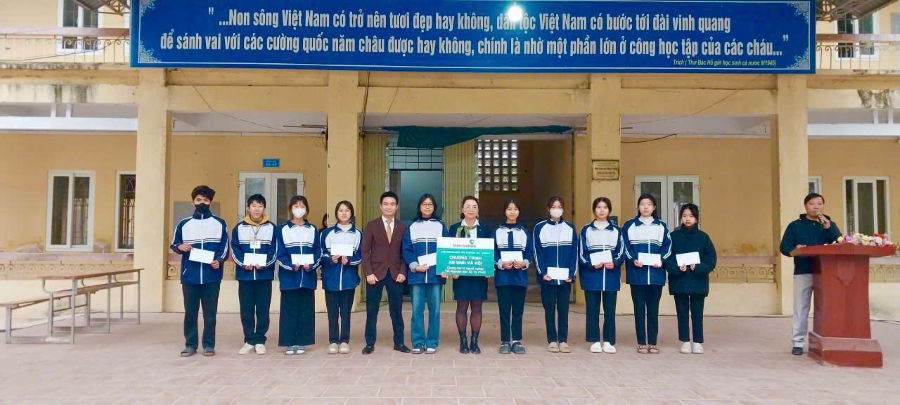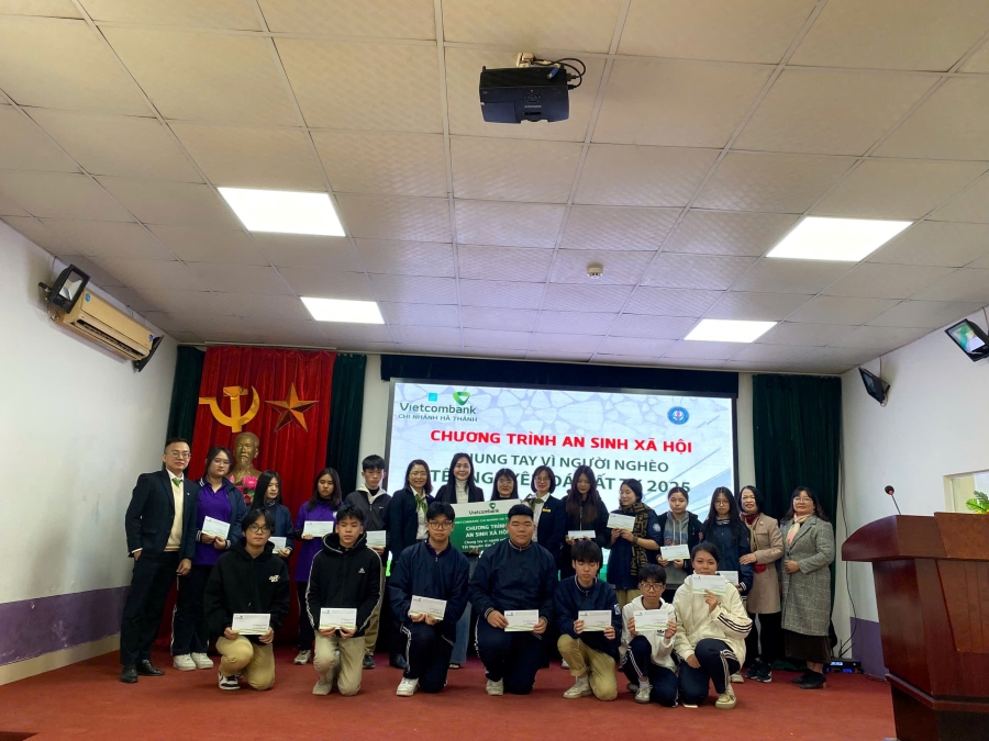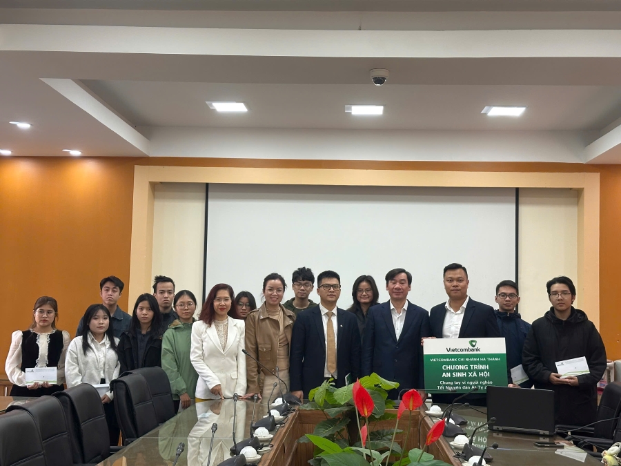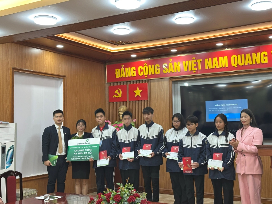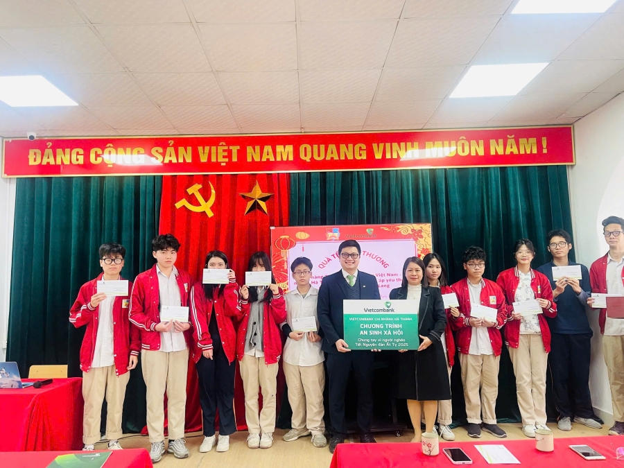 Đại diện Vietcombank Hà Thành trao quà Tết cho các em học sinh, sinh viên có hoàn cảnh khó khăn tại các trường THPT Mai Hắc Đế, Đại học Công nghệ và quản lý hữu nghị, THPT Văn Lang, THPT Minh Phú