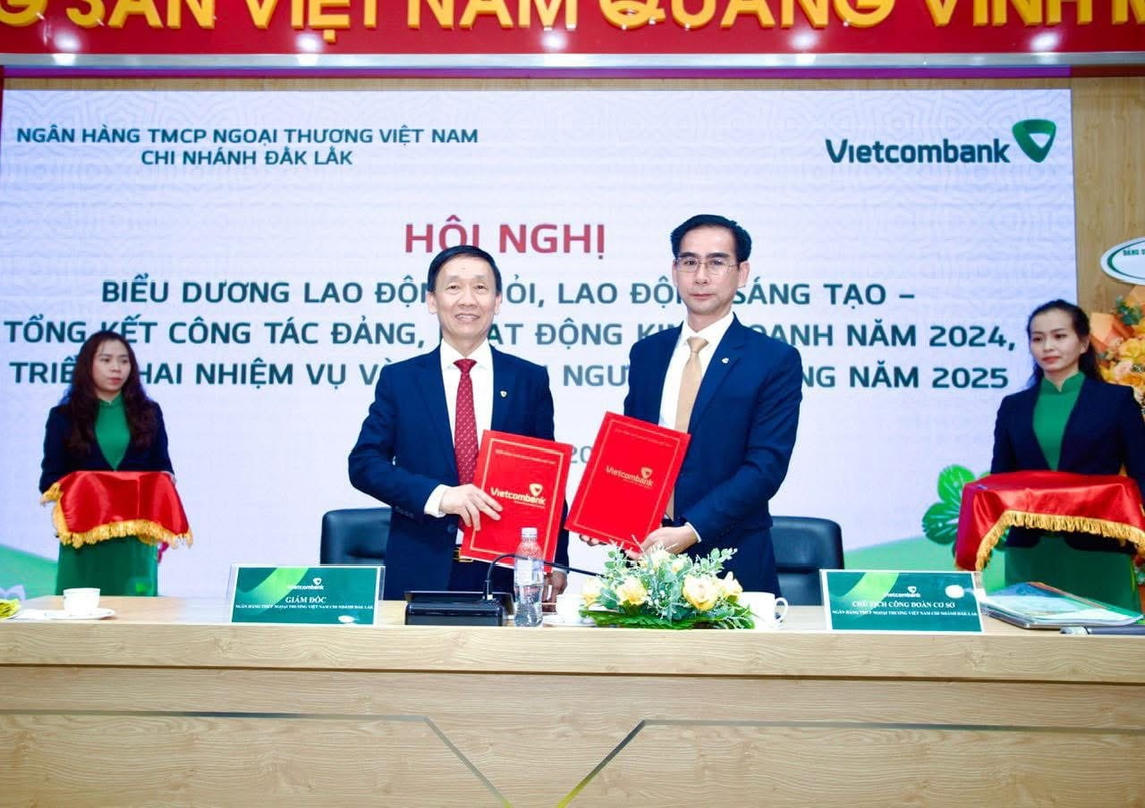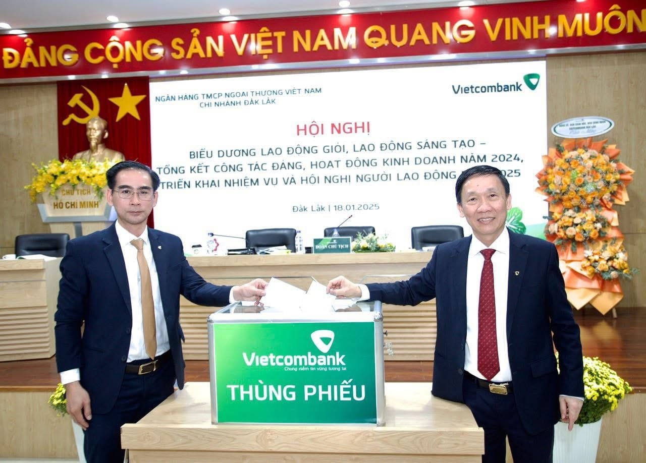 Ngày 18/01/2025, Vietcombank Đắk Lắk đã tổ chức Hội nghị biểu dương lao động giỏi, lao động sáng tạo; Hội nghị tổng kết công tác Đảng, hoạt động kinh doanh năm 2024 & triển khai nhiệm vụ năm 2025; Hội nghị Người lao động năm 2025.