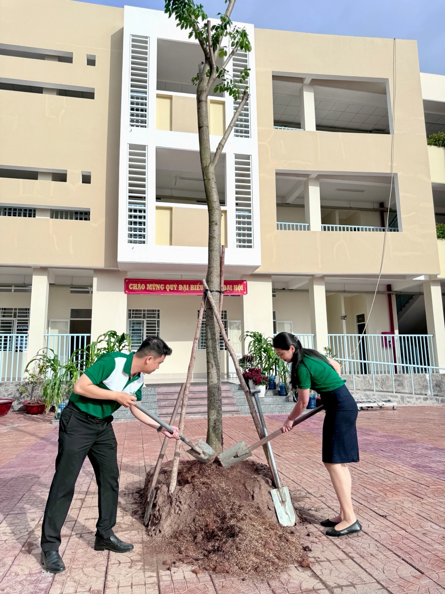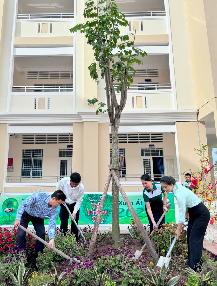 Tại buổi lễ phát động, ông Nguyễn Thái Bảo - Phó Chủ tịch UNBD quận Ninh Kiều, TP. Cần Thơ; bà Trần Thị Thúy Hằng - Phó Phòng giáo dục quận Ninh Kiều, TP. Cần Thơ; bà Trần Diệu Thúy - Chủ tịch Công đoàn, Phó Giám đốc Vietcombank Cần Thơ cùng Ban Giám hiệu các trường đã trồng 12 cây xanh (đường kính 15 cm) thuộc khuôn viên trường tiểu học Đinh Bộ Lĩnh và 14 cây xanh thuộc khuôn viên trường THCS An Bình, thuộc địa bàn phường An Bình, quận Ninh Kiều, TP. Cần Thơ.