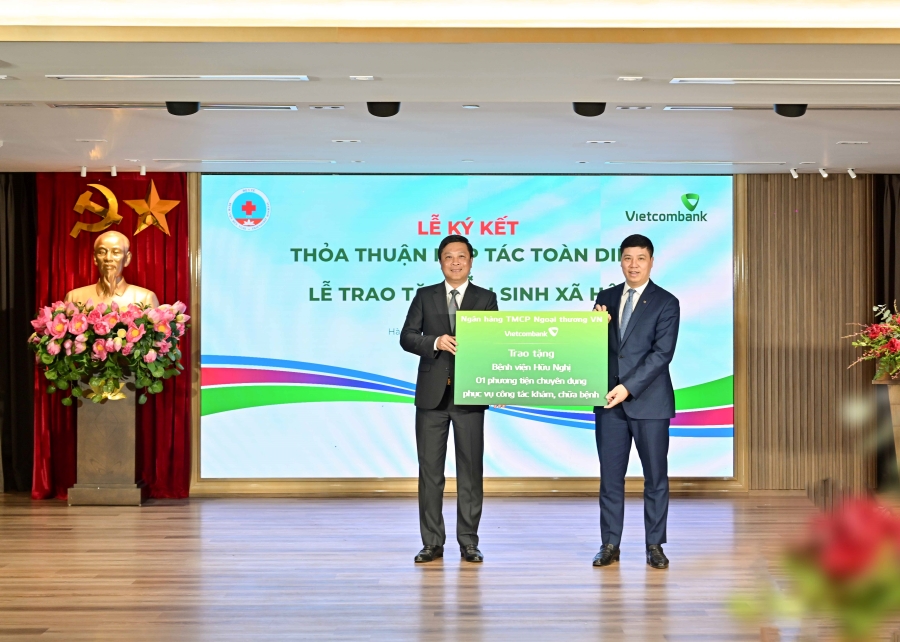 Ngày 27/02/2025, tại Trụ sở chính Vietcombank số 198 Trần Quang Khải, Hoàn Kiếm, Hà Nội đã diễn ra Lễ ký kết Thỏa thuận hợp tác toàn diện và Lễ trao tặng an sinh xã hội giữa Bệnh viện Hữu Nghị và Ngân hàng TMCP Ngoại thương Việt Nam (Vietcombank).