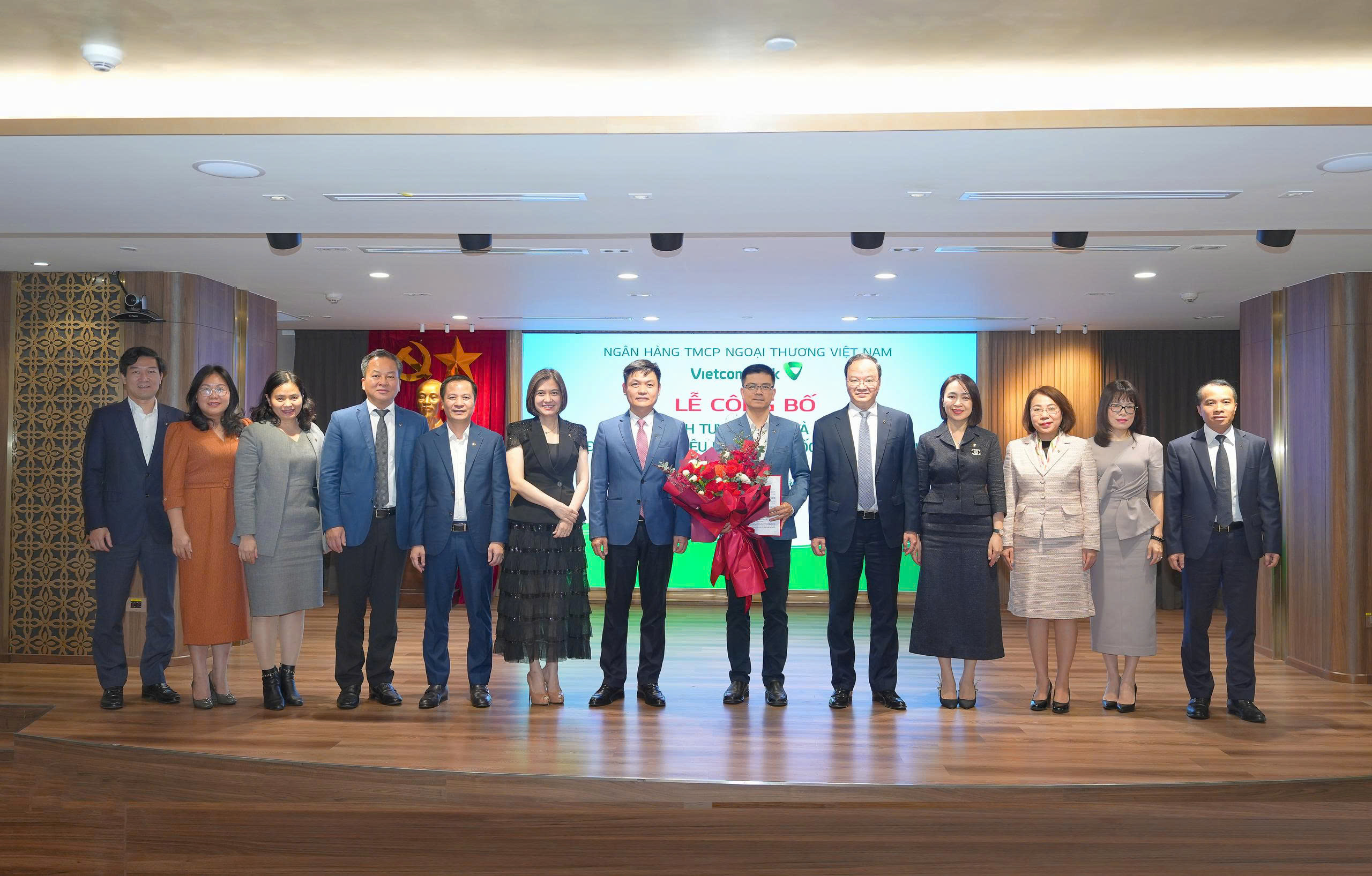 Ban Giám đốc Vietcombank Kon Tum, đại diện FWD Việt Nam và lãnh đạo các phòng chụp ảnh lưu niệm với các khách hàng trúng thưởng