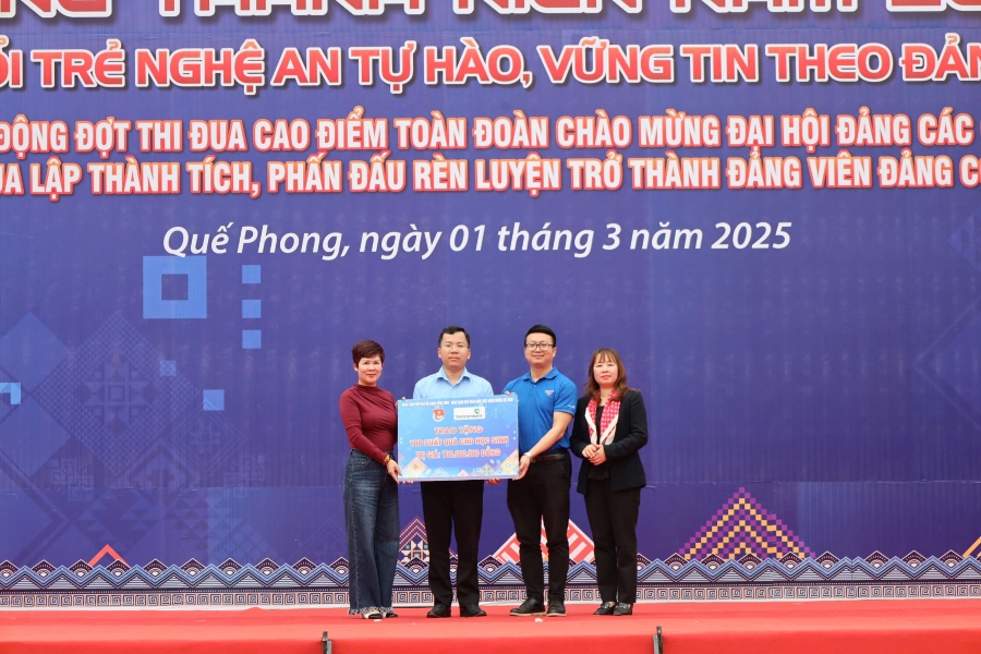 Tại chương trình, Ban tổ chức đã ra mắt các đội hình “Bình dân học vụ số" và công bố bộ nhận diện “Đoàn viên số”. Bên cạnh đó, các đơn vị tổ chức đã đồng thời trao biển hỗ trợ xây dưng nhà, hỗ trợ xây dựng các mô hình phát triển kinh tế, trao tặng nhu yếu phẩm, tivi, máy tính,… với tổng giá trị tài trợ lên đến 1,1 tỷ đồng. Trong đó, Đoàn Thanh niên Vietcombank đã tham gia tài trợ 100 suất học bổng “Vững tương lai” cho các em học sinh, sinh viên tại địa bàn huyện Quế Phong với tổng trị giá là 100 triệu đồng.