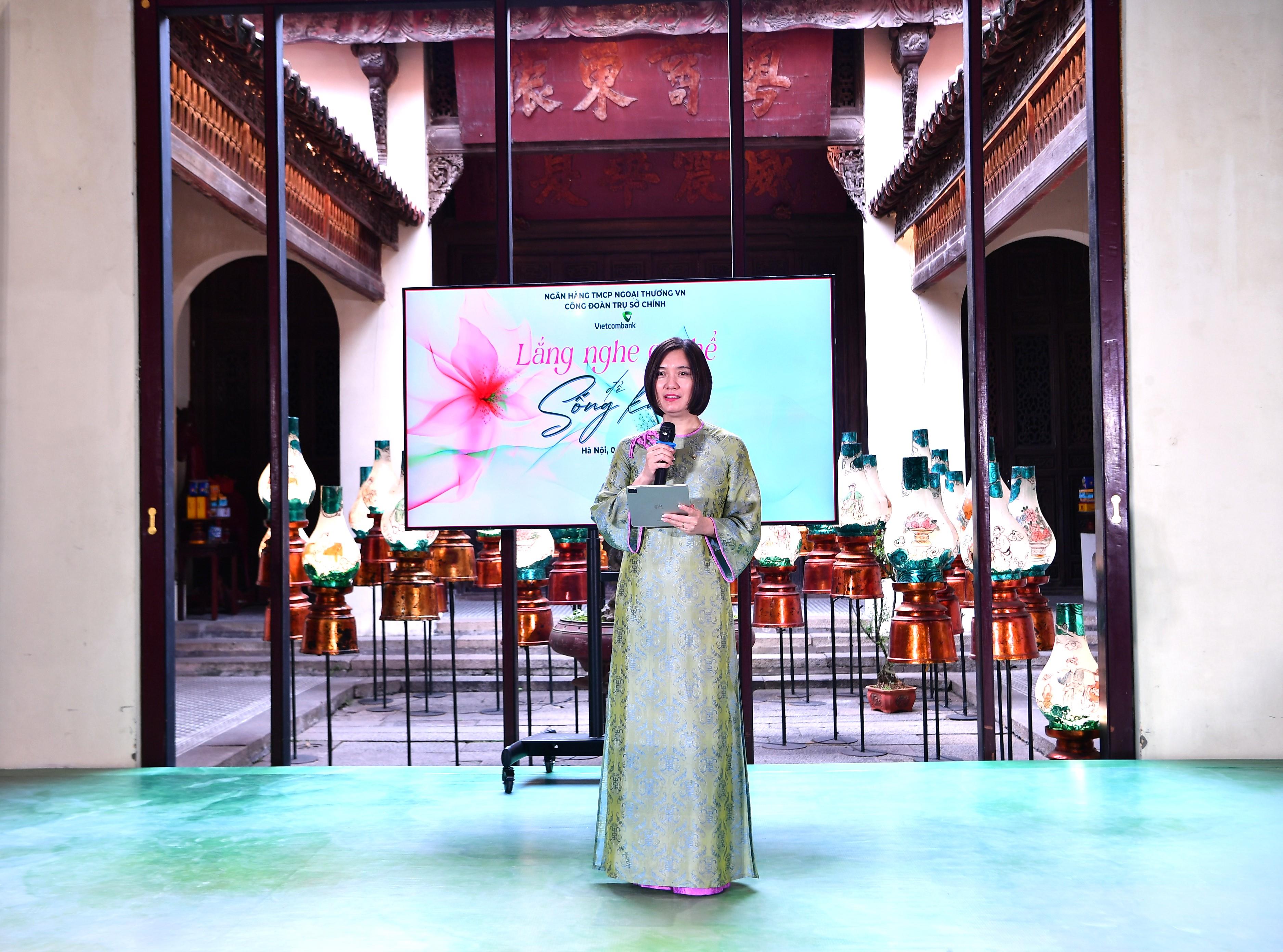 Bà Phùng Nguyễn Hải Yến - Phó Tổng Giám đốc Vietcombank, Chủ tịch Công đoàn TSC phát biểu tại chương trình