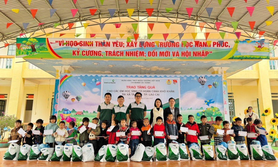 Ngày 08/3/2025, Công đoàn và Đoàn thanh niên Vietcombank Sài Thành đã tổ chức chương trình trao tặng quà cho các em học sinh có hoàn cảnh khó khăn tại xã Tả Phời, TP. Lào Cai.