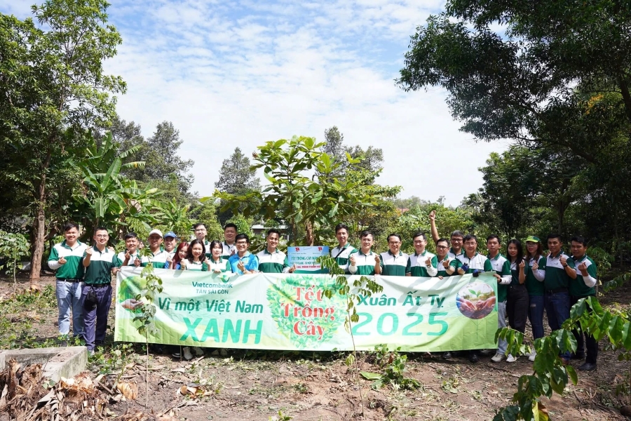 Vừa qua, hơn 200 đoàn viên, người lao động và tình nguyện viên của Vietcombank Tân Sài Gòn đã tham gia chương trình trồng cây “Vietcombank - Vì một Việt Nam xanh” năm 2025.