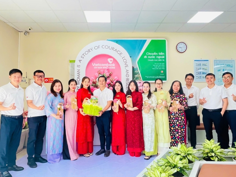 Kỷ niệm ngày Quốc tế Phụ nữ, Vietcombank Nam Bình Dương đã phát động chương trình “Tuần lễ áo dài” diễn ra từ ngày 03 đến ngày 10/03/2025.