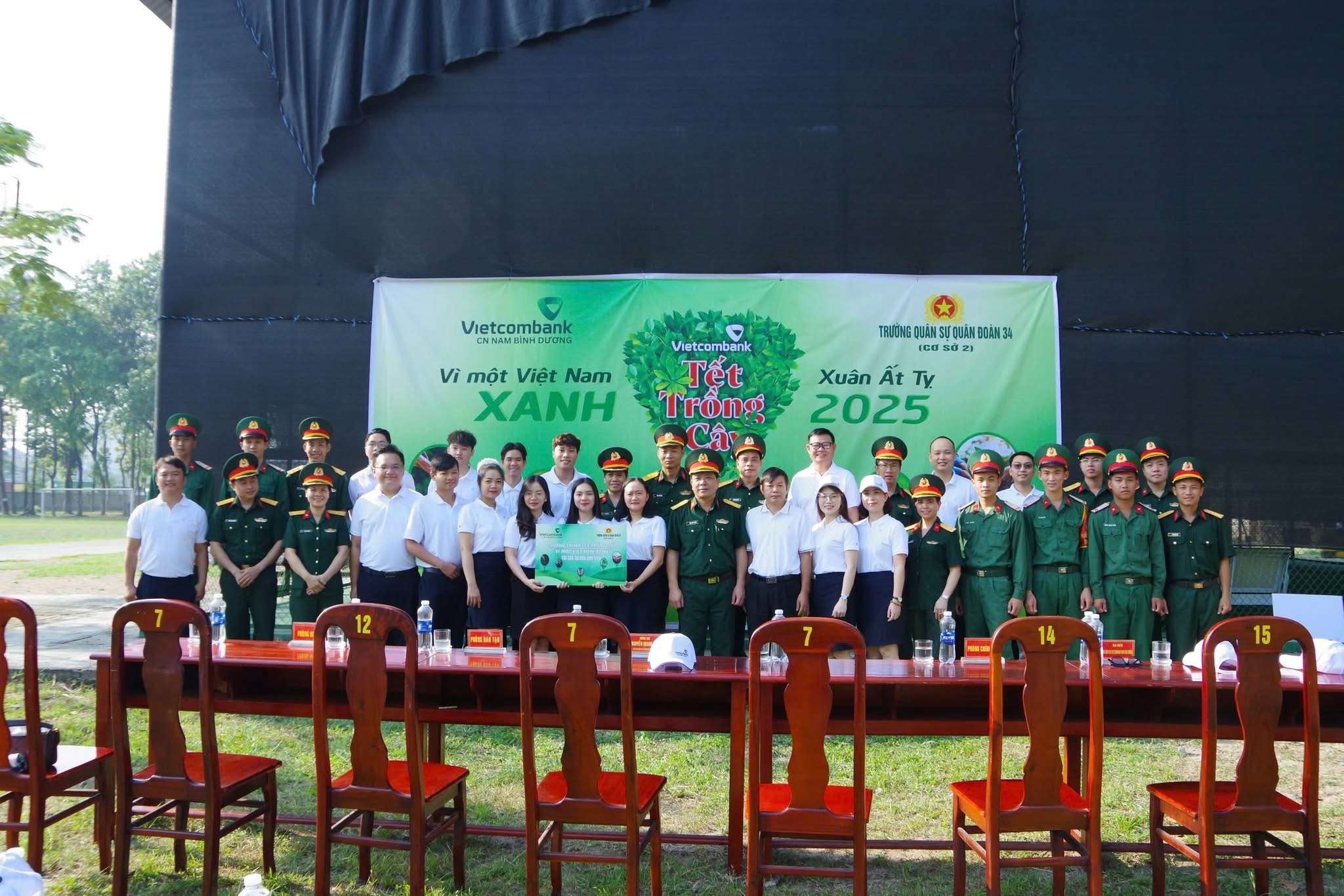 Hưởng ứng lời kêu gọi của Thủ tướng Chính phủ thực hiện chương trình “Trồng một tỷ cây xanh giai đoạn 2021 - 2025”, thực hiện chương trình Tết trồng cây “Vietcombank - Vì một Việt Nam xanh” năm 2025 do Ban thường vụ Công đoàn Vietcombank triển khai, ngày 28/2/2025, Công đoàn cơ sở Vietcombank Nam Bình Dương đã phối hợp cùng với Trường quân sự Quân đoàn 34 (cơ sở 2) tại thành phố Thuận An, Bình Dương tổ chức chương trình Tết trồng cây “Vietcombank - Vì một Việt Nam xanh”. Công đoàn cơ sở Chi nhánh thực hiện với nguồn kinh phí 30 triệu đồng.