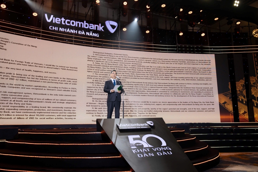 Phát biểu tại chương trình, ông Lý Hoàng Vũ - Bí thư Đảng uỷ, Giám đốc Vietcombank Đà Nẵng cho biết sự ra đời của Chi nhánh đã đánh dấu bước khởi đầu cho sứ mệnh 50 năm gắn bó cùng thành phố, khẳng định vai trò tiên phong, góp phần kết nối dòng chảy tài chính, phục vụ sự nghiệp phát triển kinh tế - xã hội của Đà Nẵng và cả khu vực miền Trung. Theo đó, chương trình là cơ hội để Vietcombank Đà Nẵng bày tỏ lòng tri ân sâu sắc đến Ban lãnh đạo Vietcombank, lãnh đạo thành phố và Ngân hàng Nhà nước cùng những nỗ lực của các thế hệ cán bộ, người lao động Chi nhánh qua các thời kỳ, đặc biệt là sự tin tưởng, đồng hành của tất cả các quý đối tác, quý khách hàng của Vietcombank Đà Nẵng.