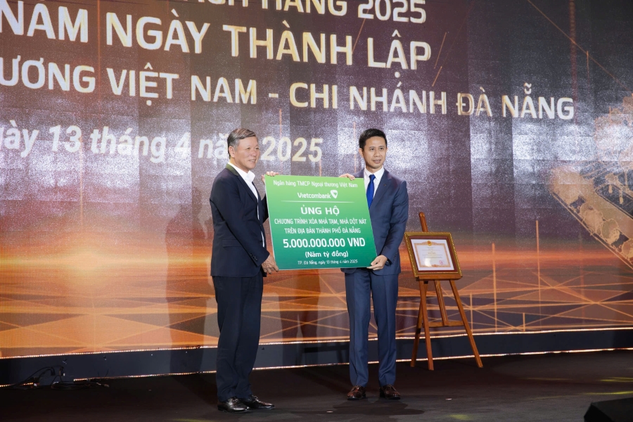 Cũng tại buổi lễ, Vietcombank Đà Nẵng đã thực hiện trao tặng Uỷ ban Mặt trận Tổ quốc Việt Nam Thành phố Đà Nẵng số tiền 5 tỷ đồng để ủng hộ “Chương trình xoá nhà tạm, nhà dột nát trên địa bàn TP. Đà Nẵng”.