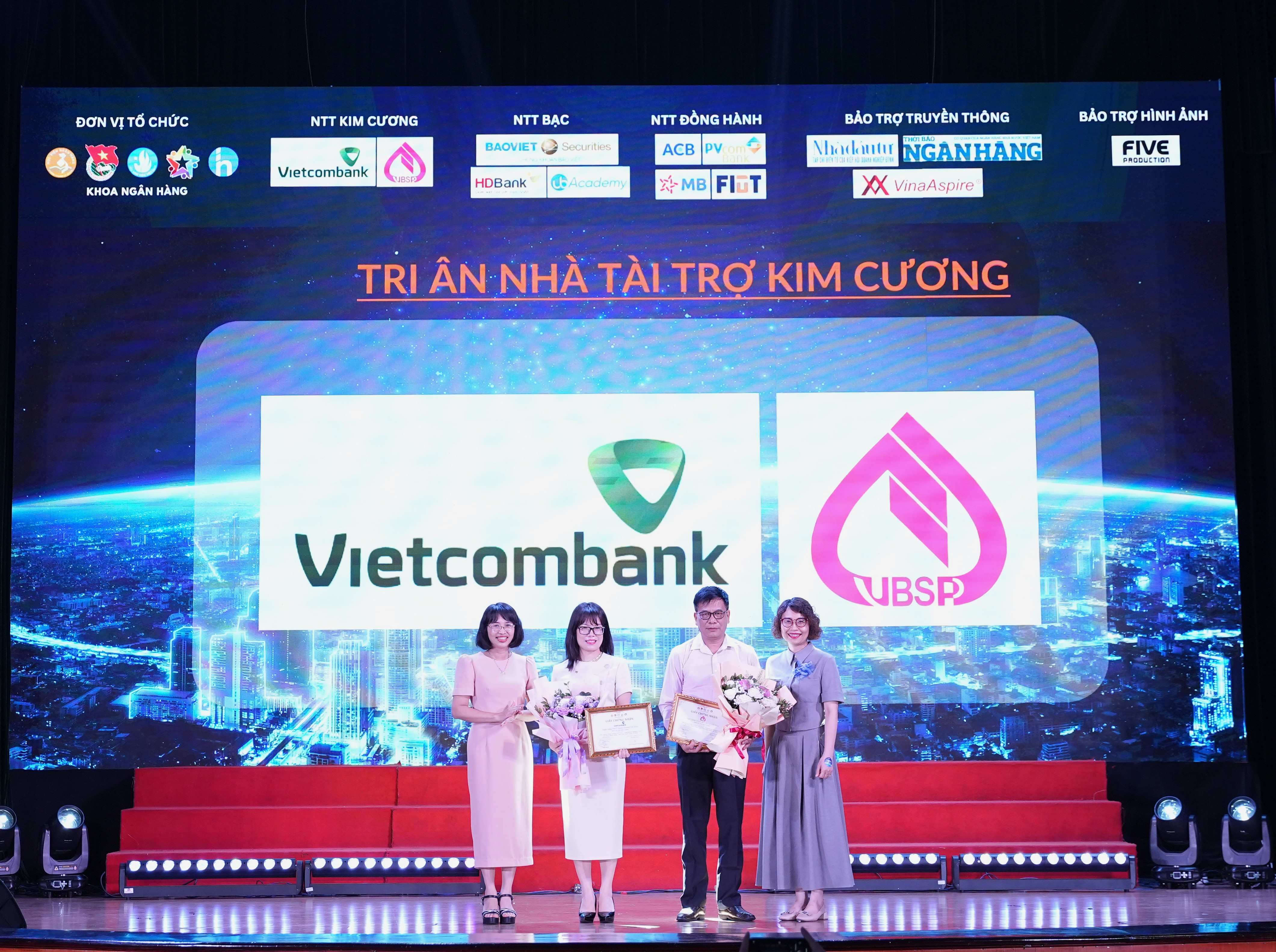 Cùng với việc đồng hành ở danh vị Nhà tài trợ Kim cương cho Chương trình, Vietcombank đã trao tặng cho HVNH bộ tặng phẩm 600 phần quà, gồm 300 bút tre thân thiện môi trường cùng 300 bộ note + bút VCB thân thiện môi trường.