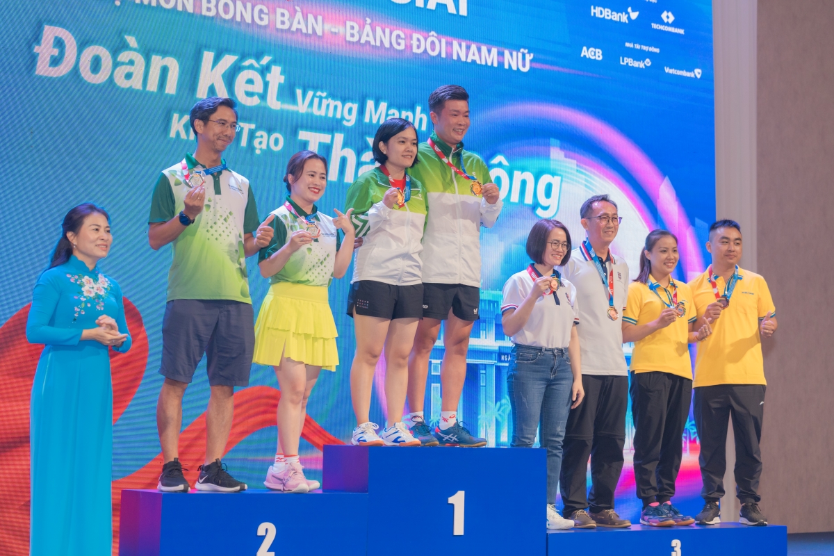 Cặp đôi VĐV Phạm Đình Thông - Nguyễn Thị Thanh Tuyền (VCB CN Tp. Hồ Chí Minh) giành huy chương vàng đôi nam nữ môn Bóng bàn và cặp đôi Đào Duy Anh - Phan Thị Vân Anh (VPĐD & VCB CN Tây Sài Gòn) giành huy chương bạc đôi nam nữ môn bóng bàn