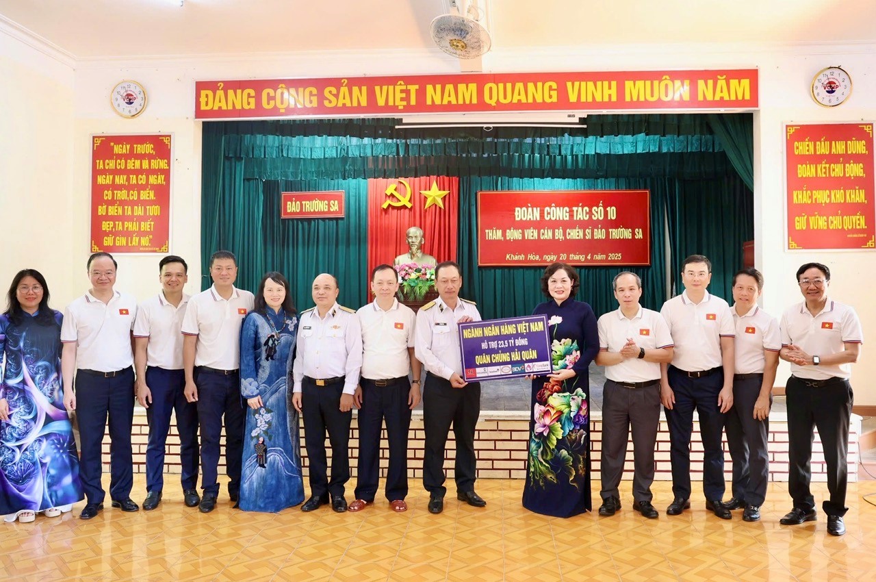 Nhân kỷ niệm 135 năm ngày sinh Chủ tịch Hồ Chí Minh (19/5/1890-19/5/2025), 50 năm giải phóng Trường Sa (29/4/1955-29/4/2025) và 70 năm thành lập Hải quân Nhân dân Việt Nam (7/5/1955-7/5/2025), từ ngày 15/4 đến 22/4/2025, Đoàn đại biểu Ngân hàng TMCP Ngoại thương Việt Nam (Vietcombank) đã tham gia Đoàn công tác số 10 thăm, tặng quà và động viên cán bộ, chiến sỹ và nhân dân huyện đảo Trường Sa (Khánh Hòa) và Nhà giàn DK1 trên thềm lục địa phía Nam của Tổ quốc.