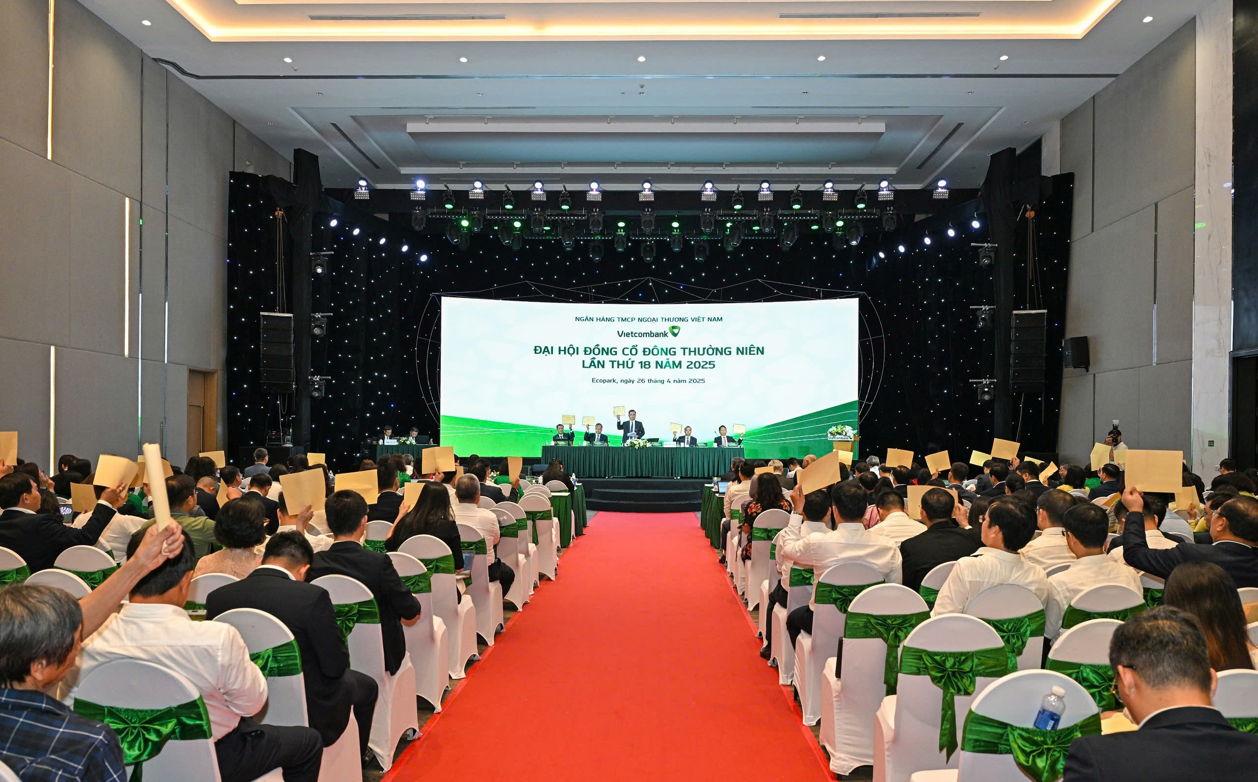 Ngày 26/4/2025, Ngân hàng TMCP Ngoại thương Việt Nam (Vietcombank - mã: VCB) đã tổ chức thành công Đại hội đồng cổ đông thường niên năm 2025 (ĐHĐCĐ) tại Trường Đào tạo & Phát triển nguồn nhân lực Vietcombank, khu đô thị Ecopark, Hưng Yên. Đại hội đã thông qua nhiều nội dung trọng yếu liên quan đến kiện toàn nhân sự lãnh đạo, phương án phát hành cổ phiếu riêng lẻ để tăng vốn điều lệ và định hướng, kế hoạch kinh doanh 2025.