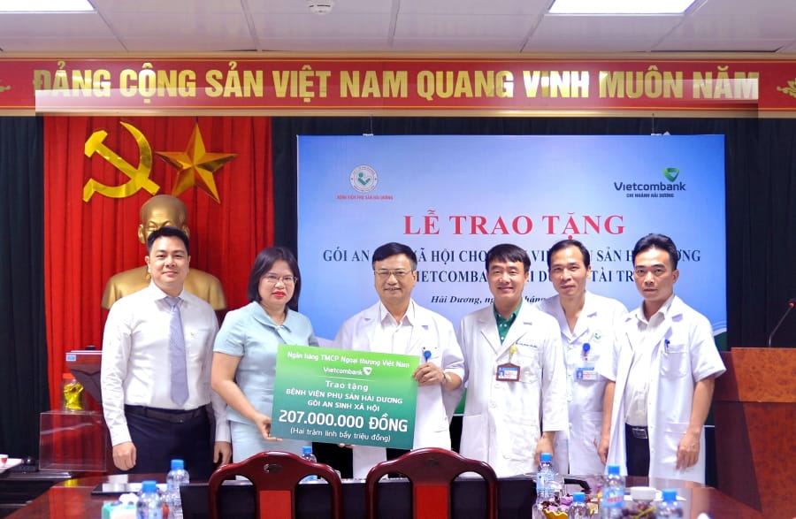 Với tinh thần đồng hành cùng ngành y tế trong công cuộc chuyển đổi số, sáng ngày 26/4/2025, Vietcombank chi nhánh Hải Dương đã trao tặng gói an sinh xã hội nhằm hỗ trợ Bệnh viện Phụ sản Hải Dương trang bị Kios khám chữa bệnh thông minh và kết nối thanh toán không dùng tiền mặt bằng mã QR code, trị giá 207 triệu đồng.