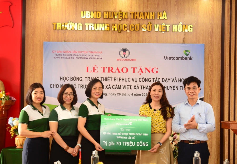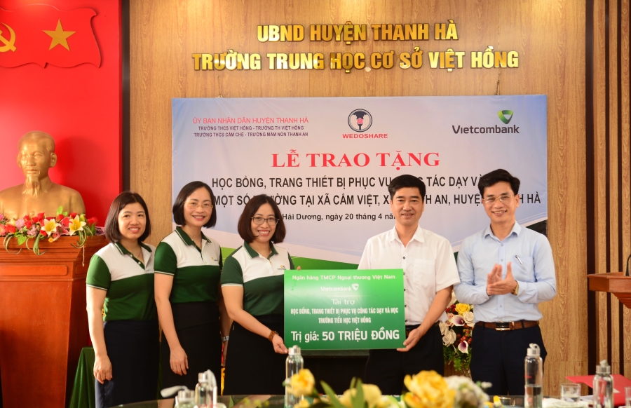 Huyện Thanh Hà là một huyện thuần nông thuộc tỉnh Hải Dương, cơ sở vật chất về y tế và giáo dục của huyện còn nhiều khó khăn. Nhằm chia sẻ những khó khăn đó, với tinh thần tương thân, tương ái và trách nhiệm với cộng đồng, Ban lãnh đạo Vietcombank đã dành tặng món quà ý nghĩa cho thầy và trò nơi đây nhằm góp phần cải thiện cơ sở vật chất cho các trường và khích lệ tinh thần, động viên các em học sinh nỗ lực vươn lên trong học tập.