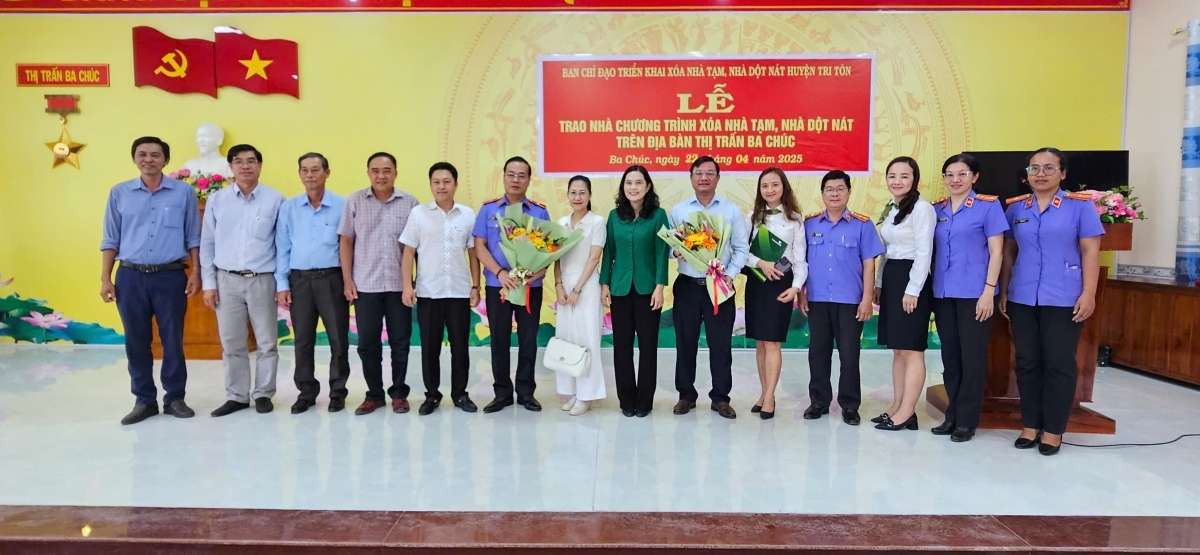 Sáng ngày 22/4/2025, Vietcombank An Giang đã tổ chức trao tặng 2 căn nhà cho các hộ dân có hoàn cảnh khó khăn tại thị trấn Ba Chúc, huyện Tri Tôn, tỉnh An Giang. Đây là hoạt động hưởng ứng chương trình "Cả nước chung tay xóa nhà tạm, nhà dột nát", với giá trị hỗ trợ mỗi căn nhà trị giá 60 triệu đồng.
