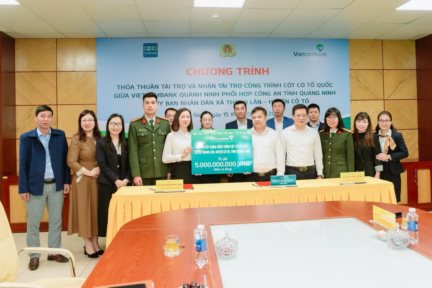 VCB Chi nhánh Quảng Ninh phối hợp cùng Công an tỉnh Quảng Ninh tài trợ công trình xây dựng Cột cờ Tổ quốc trên xã Thanh Lân, huyện Cô Tô