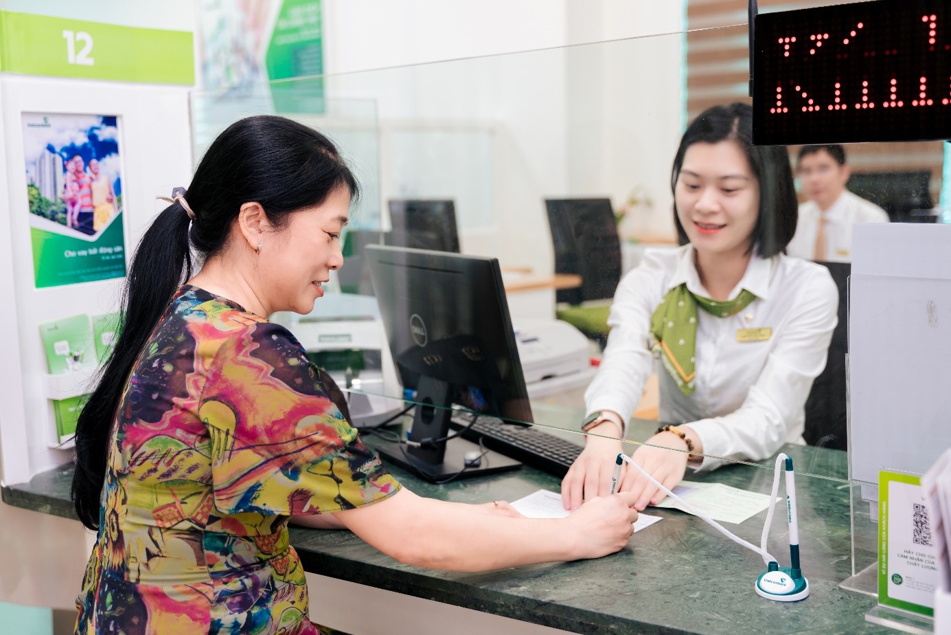 Cán bộ VCB Chi nhánh Quảng Ninh nhiệt tình, tận tâm phục vụ khách hàng giao dịch tại quầy
