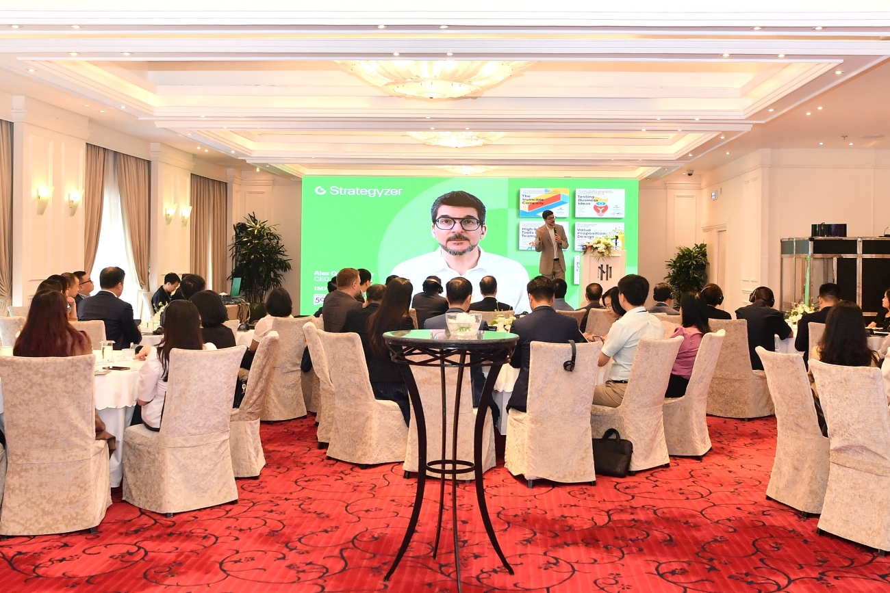 Tâm điểm của hội thảo là phần chia sẻ truyền cảm hứng từ Tiến sĩ Alexander Osterwalder – Tổng Giám đốc & nhà sáng lập Strategyzer, đồng tác giả Business Model Canvas, công cụ tư duy đã thay đổi cách vận hành và tăng trưởng của hàng nghìn doanh nghiệp toàn cầu như Microsoft, Nestlé, Coca-Cola, Mastercard, Bayer…