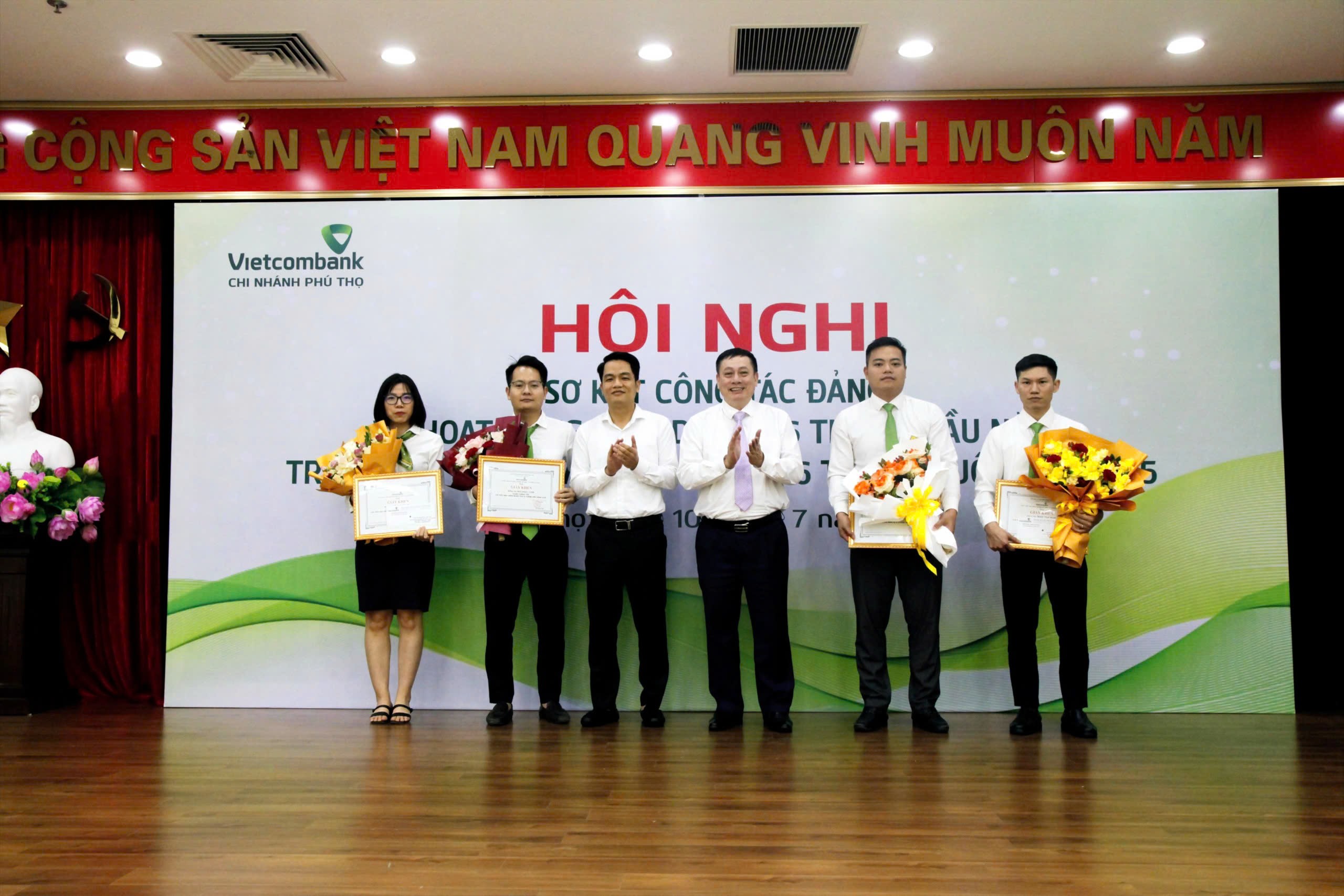 Ban Giám đốc Vietcombank Phú Thọ trao thưởng cho các cá nhân tiêu biểu