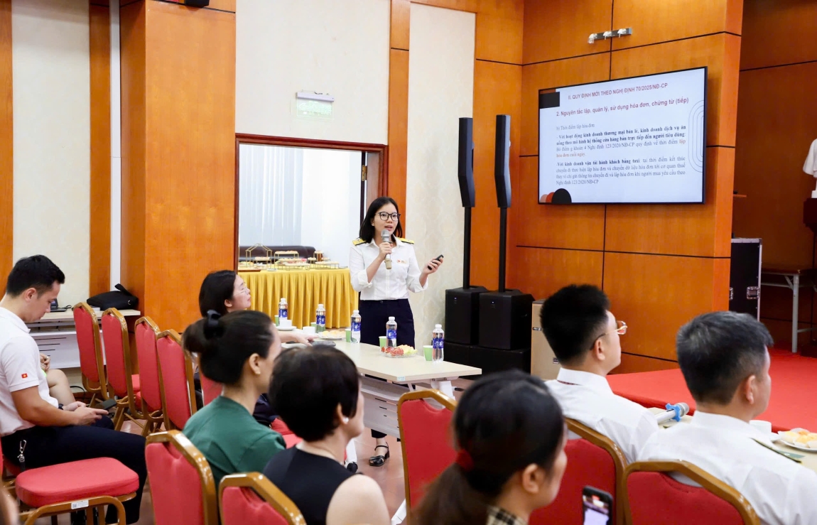 Tại Hội thảo, đại diện Cơ quan thuế cơ sở 9 Thành phố Hải Phòng đã trực tiếp phổ biến, làm rõ các điểm mới trong Nghị định 70/2025/NĐ-CP của Chính phủ và việc sử dụng hoá đơn điện tử đối với hộ kinh doanh; giải đáp 1-1 các vướng mắc như: lộ trình áp dụng quy định mới, các lưu ý trong chuyển đổi sang hình thức quản lý điện tử…