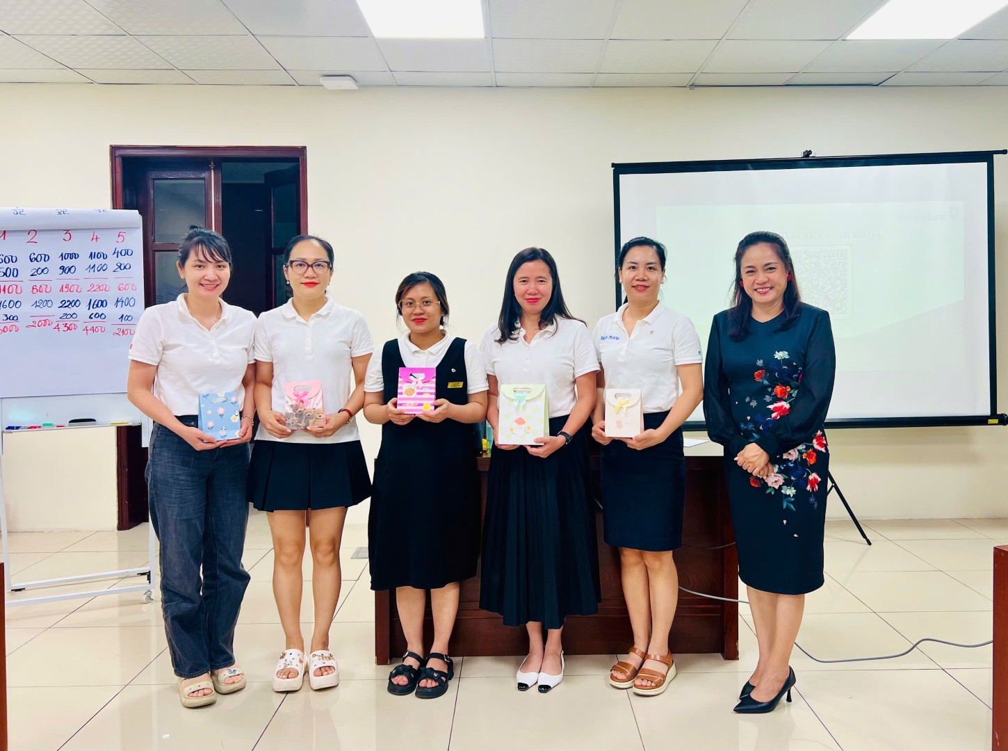 Giảng viên tặng quà cho các học viên tích cực tham gia ý kiến tại lớp học