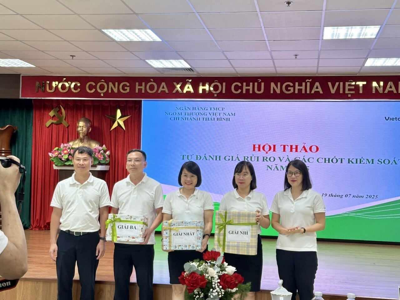 Kết thúc hội thảo, ban tổ chức đã trao thưởng cho các nhóm có phần trình bày đánh giá xuất sắc và các cá nhân có đóng góp ý kiến tích cực. Chương trình đào tạo về QLRRHD và hội thảo RCSA năm 2025 tại Vietcombank Thái Bình là dịp để chi nhánh trao đổi kinh nghiệm, rút ra được nhiều bài học giá trị phục vụ cho công tác chuyên môn tại chi nhánh.