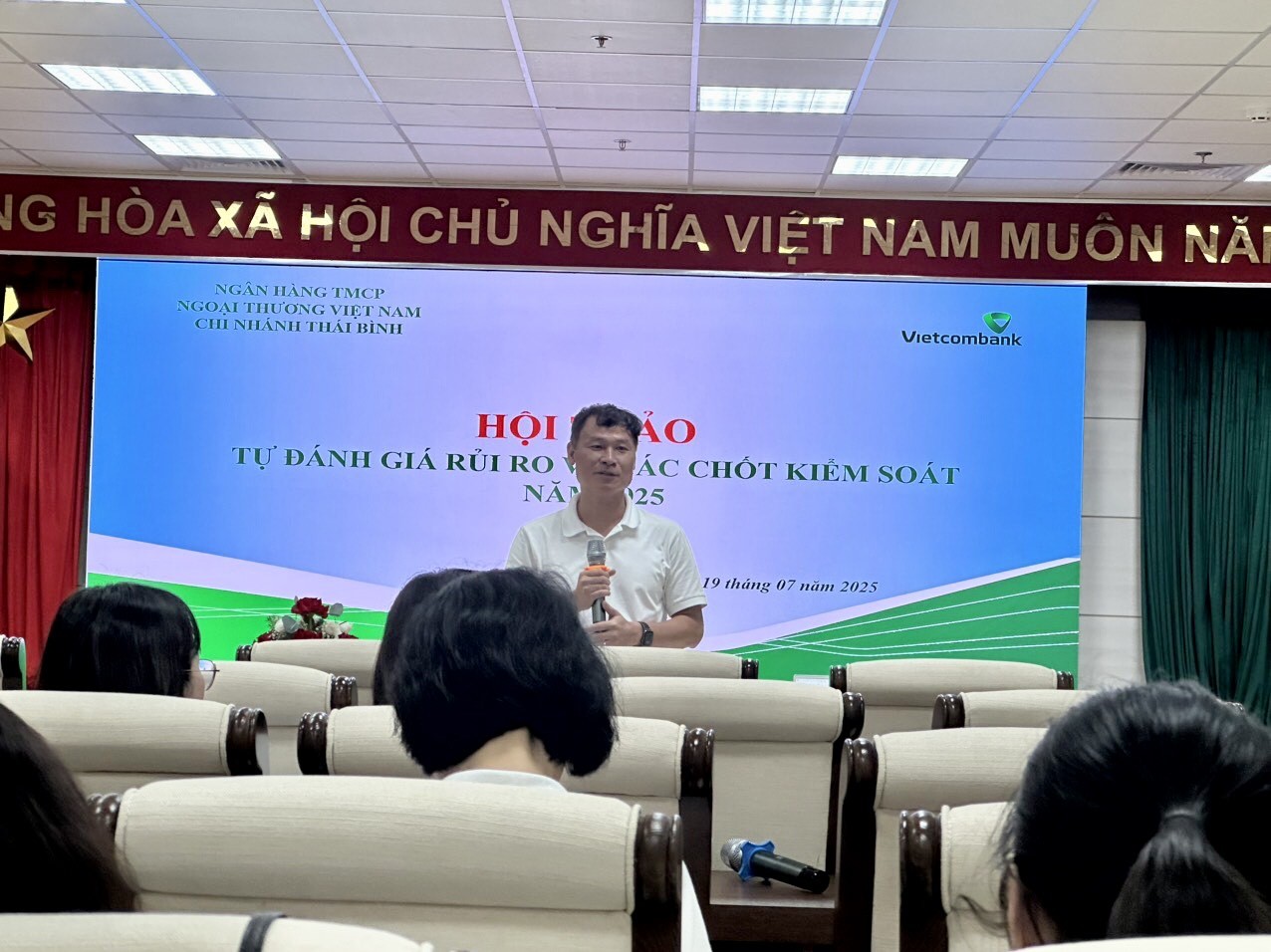 Chiều cùng ngày, chi nhánh đã tổ chức hội thảo tự đánh giá rủi ro và các chốt kiểm soát năm 2025 cho 3 mảng nghiệp vụ gồm: nghiệp vụ mở và quản lý tài khoản, nghiệp vụ thẻ, nghiệp vụ an toàn kho quỹ.