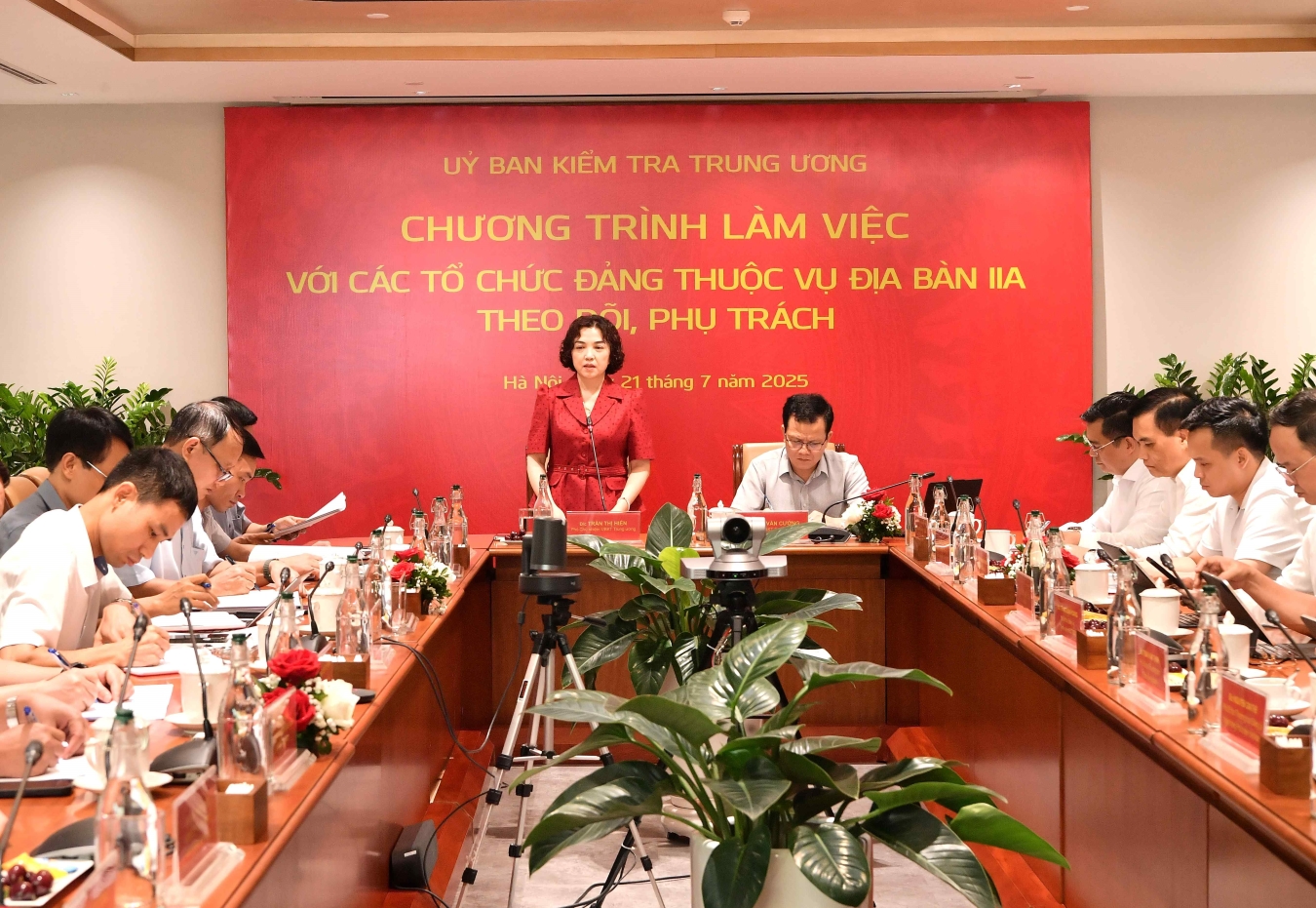 Chương trình làm việc đã tập trung vào: Việc triển khai thực hiện Kết luận 148-KL/TW ngày 08/4/2025 của Bộ Chính trị về kết quả kiểm tra một số chuyên đề công tác trọng tâm năm 2025 của Bộ Chính trị, Ban Bí thư và Nghị quyết số 60-NQ/TW ngày 12/4/2025 của Ban Chấp hành Trung ương; Việc thực hiện các kết luận của UBKT Trung ương và việc triển khai thực hiện các quy định, hướng dẫn về công tác kiểm tra, giám sát, kỷ luật đảng mới ban hành.