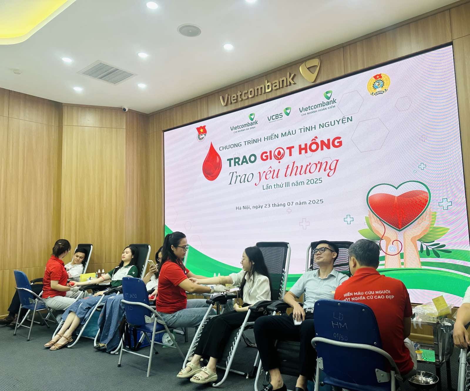 Ngày 23/7/2025, Đoàn Thanh niên Vietcombank Ba Đình cùng Vietcombank Hoàn Kiếm, Công ty Chứng khoán Vietcombank (VCBS) và Viện Huyết học - Truyền máu Trung ương đã tổ chức chương trình hiến máu tình nguyện với chủ đề “Vietcombank: Trao giọt hồng - Trao yêu thương”.