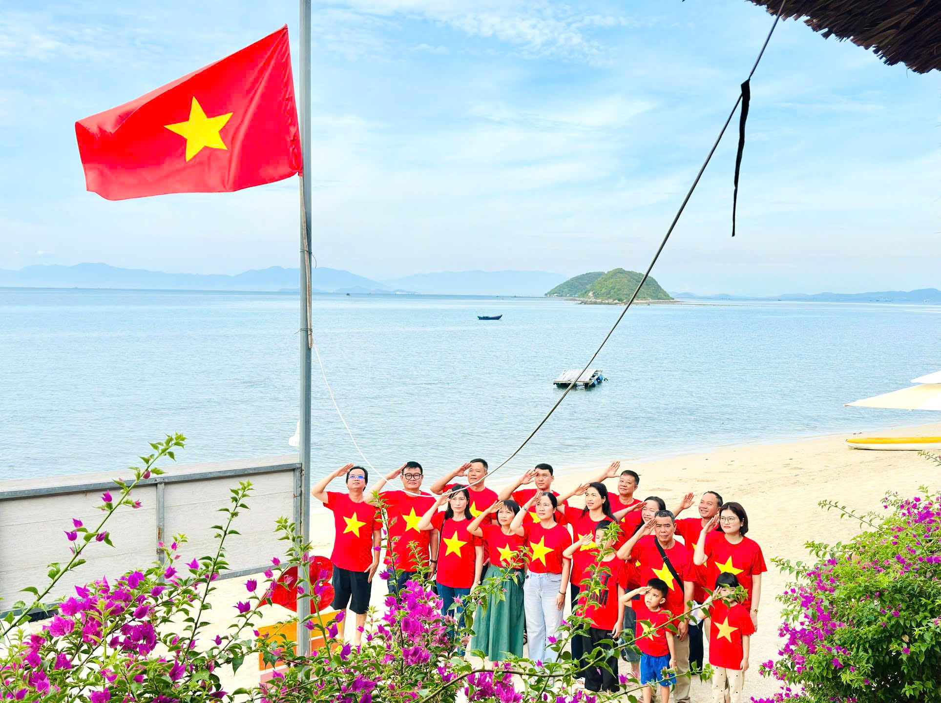 Một trong những khoảnh khắc khiến anh Nam và các đồng nghiệp xúc động nhất là buổi lễ chào cờ sáng sớm trên đảo Điệp Sơn. Khi những tia nắng đầu tiên chiếu xuống biển, hòa cùng tiếng sóng vỗ, cả đoàn đã đứng trang nghiêm dưới lá cờ đỏ sao vàng. Anh Nam kể lại: “Anh chủ đảo khá bất ngờ khi thấy chúng tôi mặc áo cờ và hỏi chúng tôi đến từ đâu. Khi biết chúng tôi là người Vietcombank và đang hưởng ứng chương trình, anh ấy rất trân trọng. Khoảnh khắc ấy, mỗi người trong đoàn đều cảm nhận được niềm tự hào dân tộc sâu sắc và niềm tin mãnh liệt vào một kỷ nguyên mới của đất nước.”
