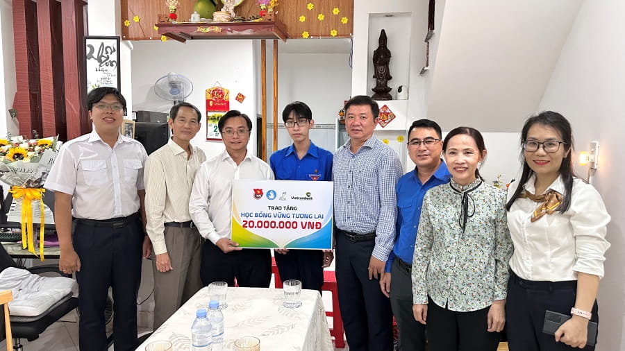 Tại buổi gặp gỡ, Vietcombank Vũng Tàu đã đại diện Vietcombank trao tặng học bổng trị giá 20 triệu đồng cho em Phan Quang Hiển Vinh từ quỹ học bổng “Vững tương lai” theo chương trình phối hợp giữa Trung ương Đoàn TNCS Hồ Chí Minh và Ngân hàng TMCP Ngoại thương Việt Nam.