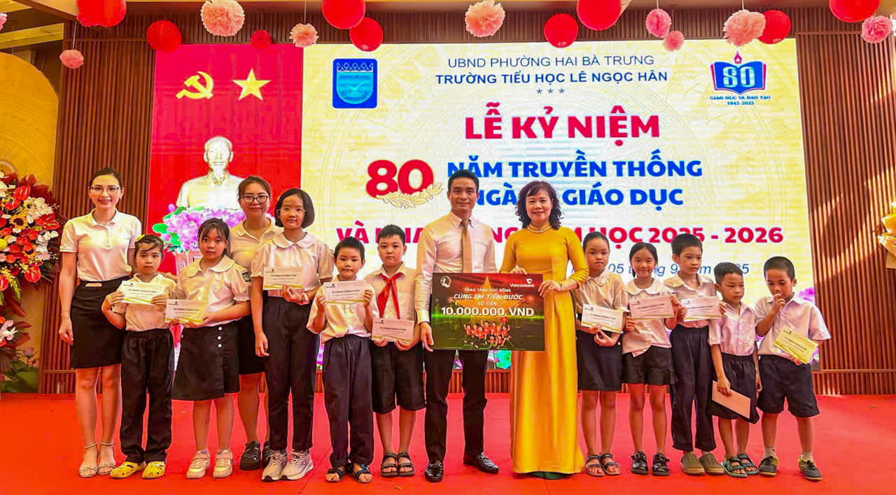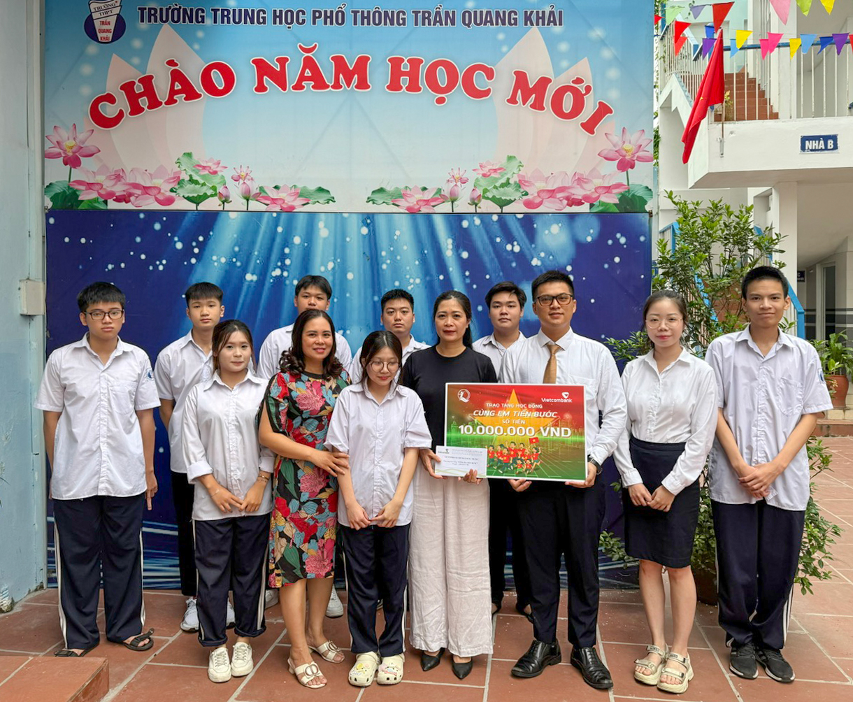 Tại địa bàn Hà Nội, Vietcombank Hà Thành đã trao tặng 30 suất học bổng với tổng trị giá 30 triệu đồng cho học sinh các trường: THPT Trần Quang Khải, THPT Mai Hắc Đế và Tiểu học Lê Ngọc Hân. Mỗi trường nhận 10 suất học bổng, tương ứng 10 triệu đồng, với giá trị 1 triệu đồng/suất. Đây là những phần quà mang ý nghĩa thiết thực, không chỉ hỗ trợ về vật chất mà còn là nguồn động viên tinh thần, khích lệ các em học sinh nghèo tiếp tục nỗ lực vươn lên trong học tập, nuôi dưỡng ước mơ và hoài bão của mình.