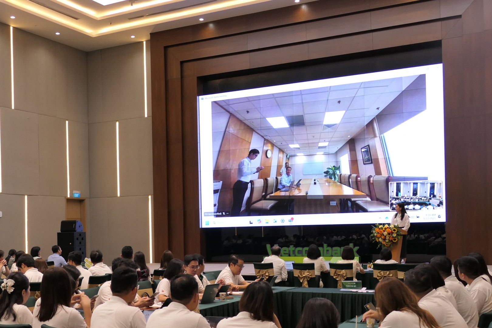 Ông Nguyễn Việt Cường - Phó Tổng Giám đốc Vietcombank phát biểu khai mạc chương trình đào tạo qua cầu truyền hình