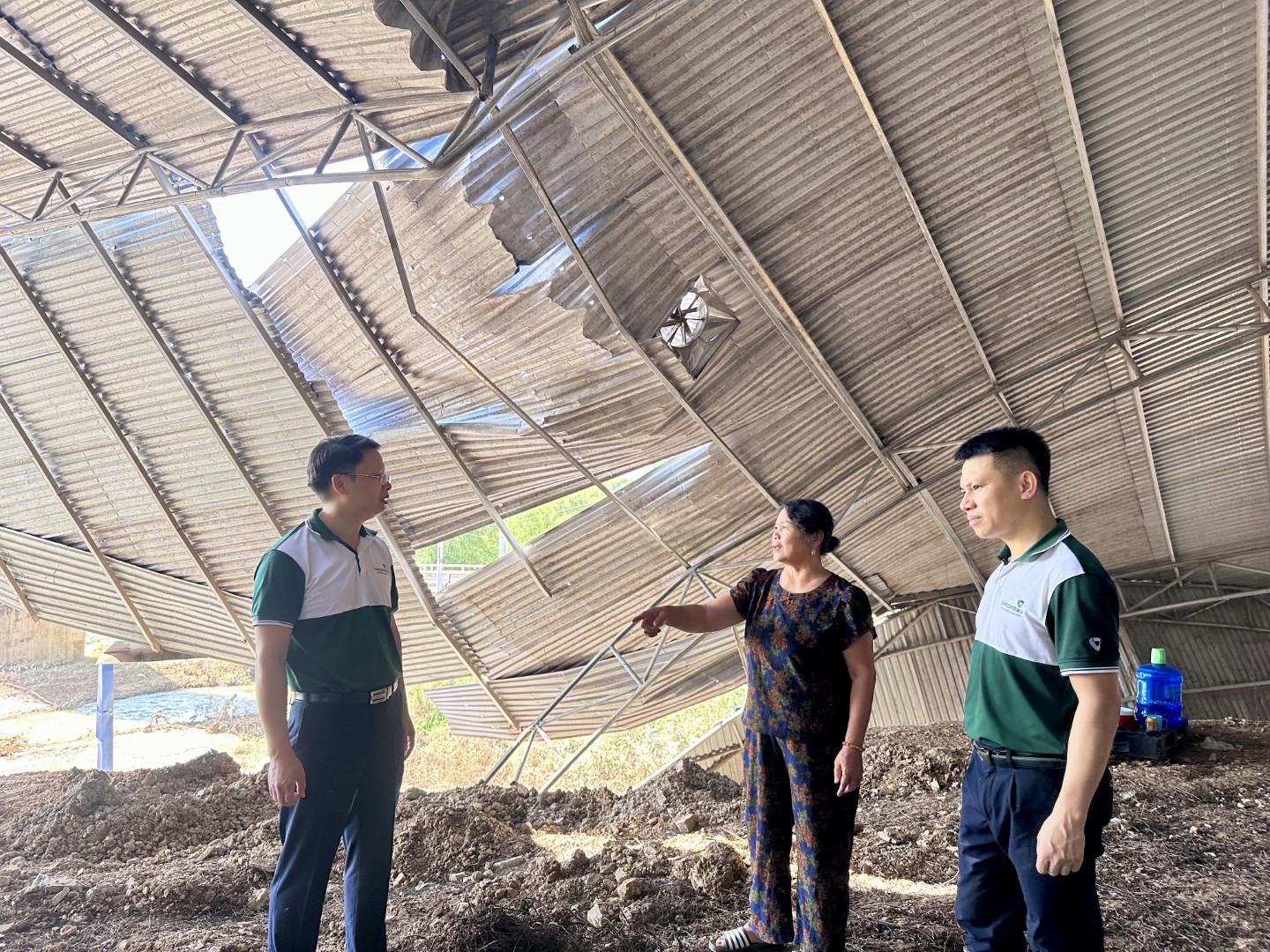 Đoàn công tác cũng đã đến thăm các gia đình khách hàng và cán bộ bị ảnh hưởng bởi mưa bão, chia sẻ những khó khăn, mất mát, đồng thời báo cáo kịp thời về Trụ sở chính để có phương án hỗ trợ phù hợp, góp phần giúp khách hàng và cán bộ sớm ổn định cuộc sống, khôi phục hoạt động.