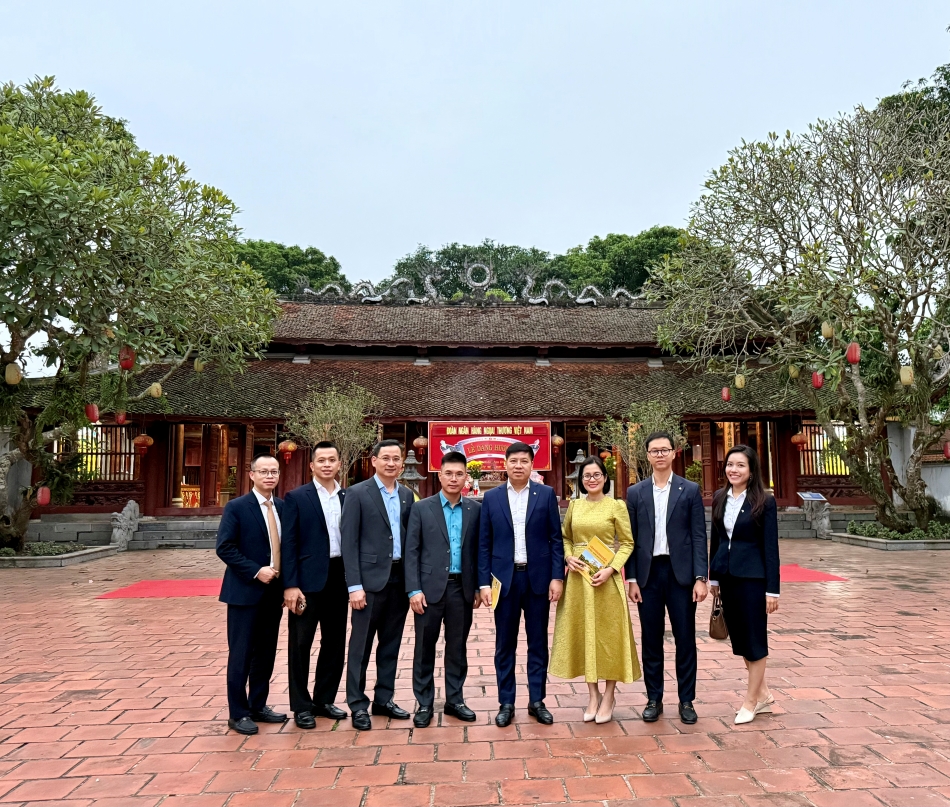 Đoàn đại biểu Công đoàn Vietcombank chụp ảnh lưu niệm tại Văn Miếu Mao Điền