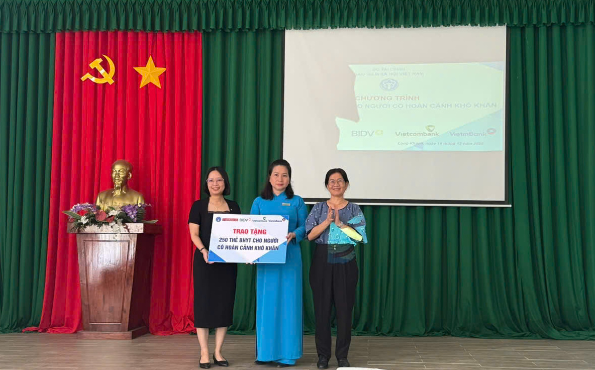 Từ ngày 12 đến 18/12/2025, Vietcombank Tiền Giang đã phối hợp với Bảo hiểm xã hội tỉnh Đồng Tháp tổ chức chương trình trao tặng 237 thẻ bảo hiểm y tế (BHYT) với tổng trị giá 150 triệu đồng cho người dân có hoàn cảnh khó khăn trên địa bàn xã Gia Thuận, xã Long Khánh và xã Tràm Chim, tỉnh Đồng Tháp.