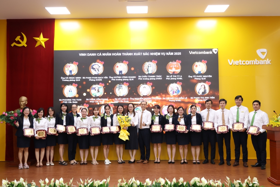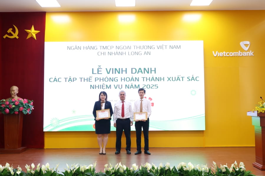 Nhân dịp này, Ban Giám đốc Vietcombank Long An đã biểu dương, khen thưởng các tập thể và cá nhân có thành tích tiêu biểu trong năm 2025, tạo động lực để toàn thể cán bộ, người lao động tiếp tục phát huy tinh thần “Sáng tạo - Trách nhiệm - Quyết liệt - Kỷ cương”, với phương châm “Đột phá - Phát triển - Hiệu quả - Bền vững”, quyết tâm hoàn thành thắng lợi các mục tiêu kinh doanh năm 2026.