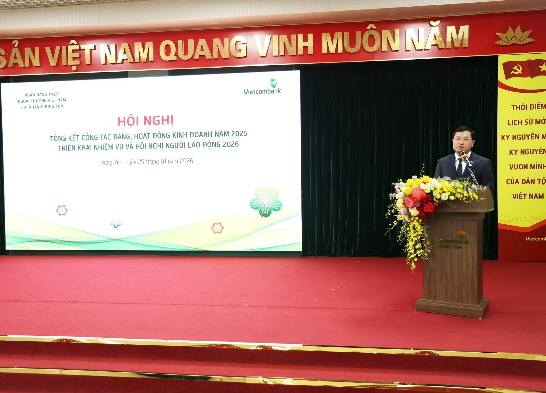Chiều ngày 25/01/2026, trong không khí phấn khởi chào đón năm mới, Vietcombank Hưng Yên đã tổ chức Hội nghị tổng kết công tác Đảng, hoạt động kinh doanh năm 2025, triển khai nhiệm vụ năm 2026 và Hội nghị Người lao động năm 2026.