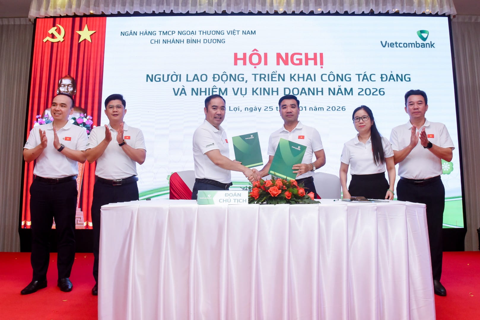 Sáng ngày 25/01/2026, Vietcombank Bình Dương đã tổ chức Hội nghị Người lao động, triển khai công tác Đảng và nhiệm vụ kinh doanh năm 2026 trong không khí nghiêm túc, trách nhiệm và đầy khí thế. Sự kiện quy tụ đầy đủ các đại biểu của Đảng ủy, Ban Giám đốc, lãnh đạo các đơn vị cùng toàn thể cán bộ, người lao động chi nhánh.