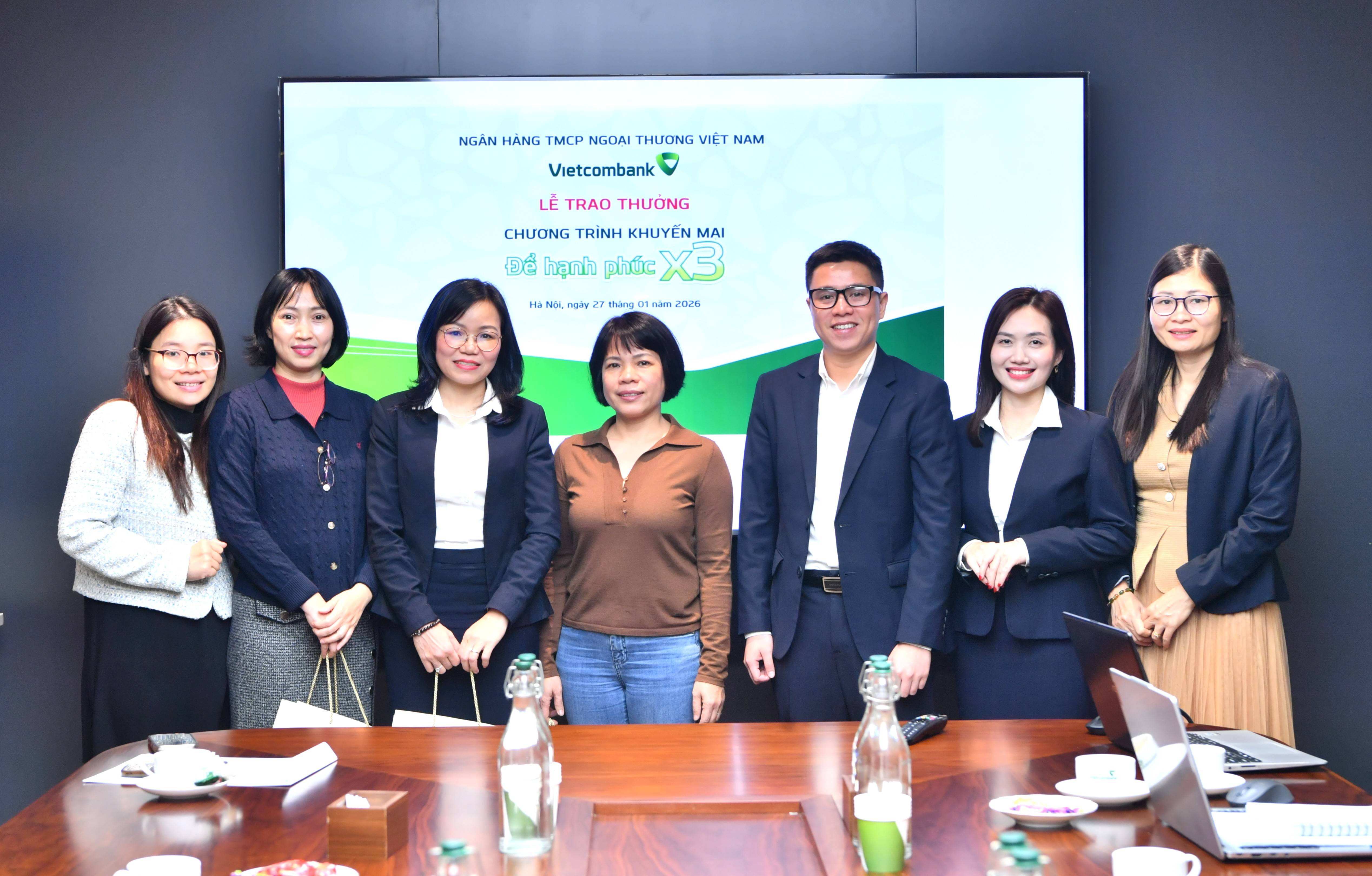 Sáng ngày 27/01/2026, tại Hà Nội, Ngân hàng TMCP Ngoại thương Việt Nam (Vietcombank) đã tổ chức Lễ quay thưởng chương trình khuyến mại (CTKM) “Để hạnh phúc nhân ba” với tổng giá trị giải thưởng 4,4 tỷ đồng.