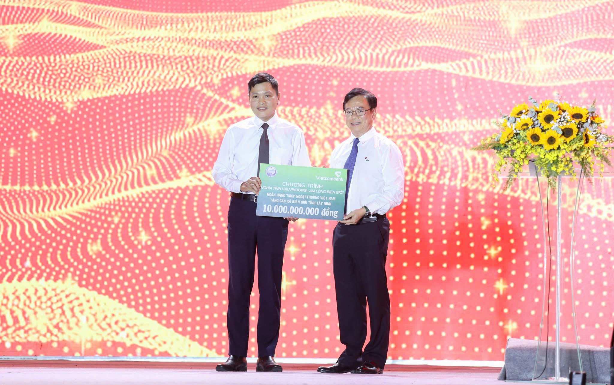 Tại chương trình, Vietcombank đã trao tặng số tiền 10 tỷ đồng, gửi gắm tấm lòng và sự quan tâm sâu sắc đến chiến sĩ, bà con nhân dân các xã vùng biên giới còn nhiều khó khăn, góp phần cải thiện đời sống và tiếp thêm niềm tin, động viên các lực lượng cùng bà con nơi tuyến đầu Tổ quốc yên tâm gắn bó, giữ vững biên cương.