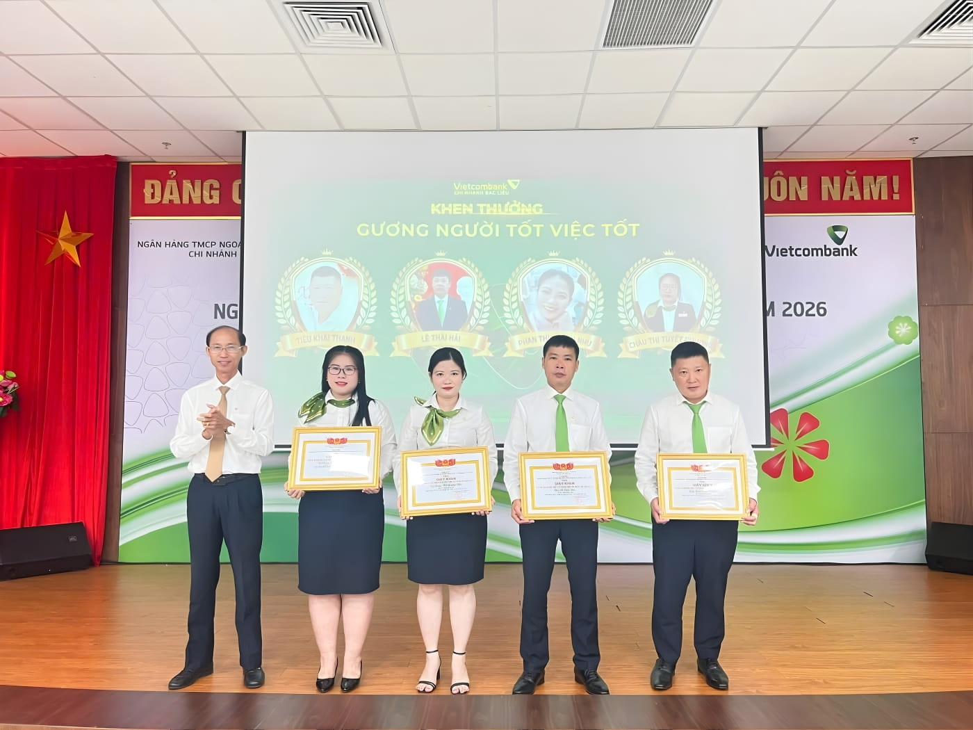Bên cạnh đó, công tác khen thưởng năm nay được chú trọng nhiều hơn nhằm ghi nhận những thành tích và đóng góp của các tập thể, cá nhân đối với hoạt động chung của Vietcombank Bạc Liêu. Điểm mới trong công tác khen thưởng năm nay là Ban Giám đốc đã tuyên dương và khen thưởng nhiều hơn: khen thưởng cho các tập thể hoàn thành tốt nhất theo các chuyên đề, vinh doanh top 3 cá nhân hoàn thành tốt nhất chỉ tiêu tăng trưởng dư nợ, vinh doanh top 3 cá nhân hoàn thành tốt nhất chỉ tiêu tăng trưởng huy động vốn, tuyên dương gương người tốt việc tốt, tặng giấy khen cho cán bộ hoàn thành xuất sắc nhiệm vụ năm 2025…Đây là sự động viên, khích lệ to lớn đối với tập thể, cá nhân đã có thành tích nổi bật, góp phần lan tỏa mạnh mẽ tinh thần trách nhiệm và cống hiến trong toàn đơn vị.